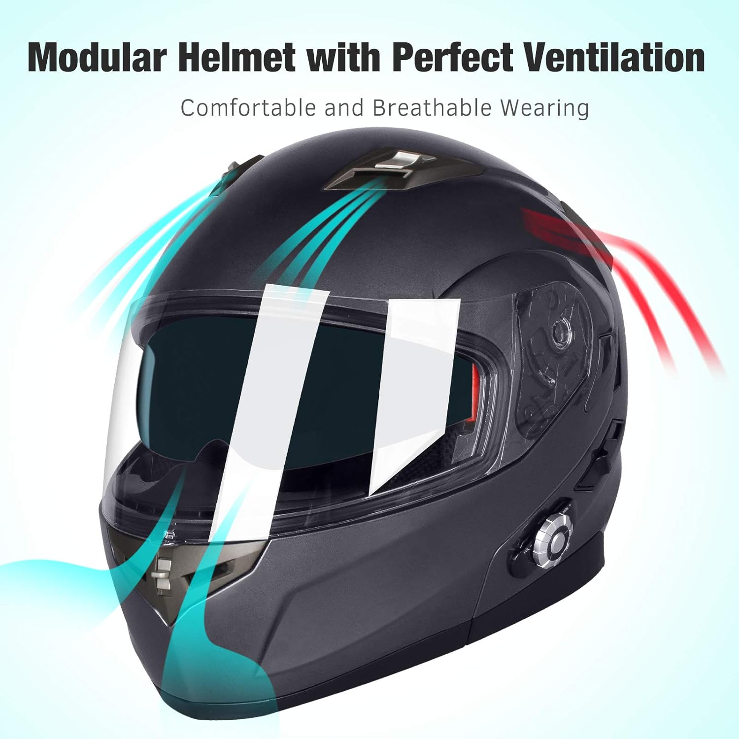 - ✪ [ 3.0 Bluetooth Motorcycle Helmets ] Motorcycle helmet with Bluetooth 3.0 technology allows you to enjoy music, FM, GPS voice prompt and intercom stably while riding, makes team motorbike communication more convenient and efficient.