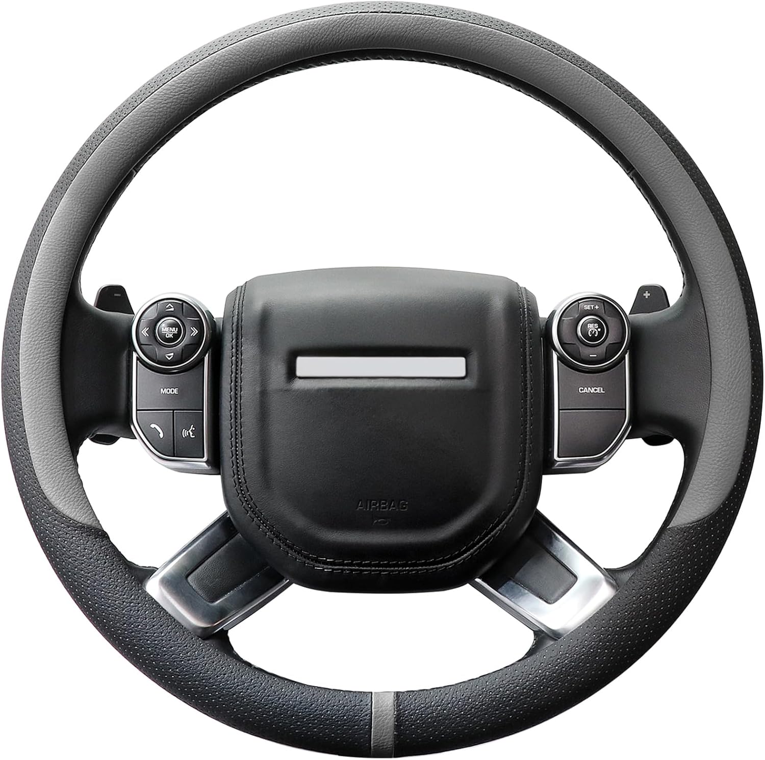COFIT Breathable Car Steering Wheel Cover 16 inch Auto Universal Leather Wrap Non-Slip Steeringwheel Protector Automotive Interior Accessories, Grey (Suit for 15.5-16 inch)