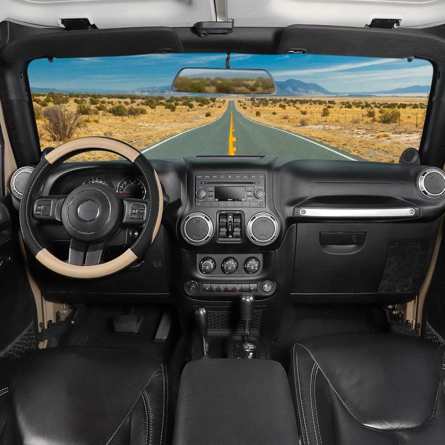 - ARMOR UP YOUR CAR INTERIOR: The durable and easy-to-install steering wheel cove is the premier option for covering an old or worn original factory steering wheel. The delicate splicing design adds texture to the interior of your car.