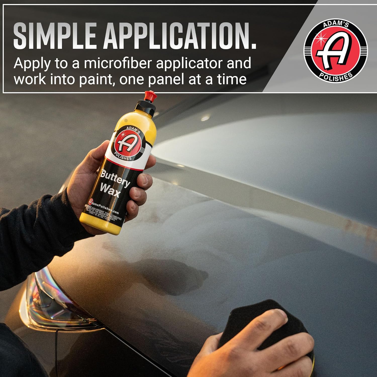 - ✅ HIGH QUALITY, ADVANCED LIQUID CARNAUBA WAX - Made using an advanced blend of polymers and high-grade liquid carnauba waxes, Adam’s Buttery Wax is no joke and won’t stain your trim or rubber with an unsightly white residue if you get applicator-happy.