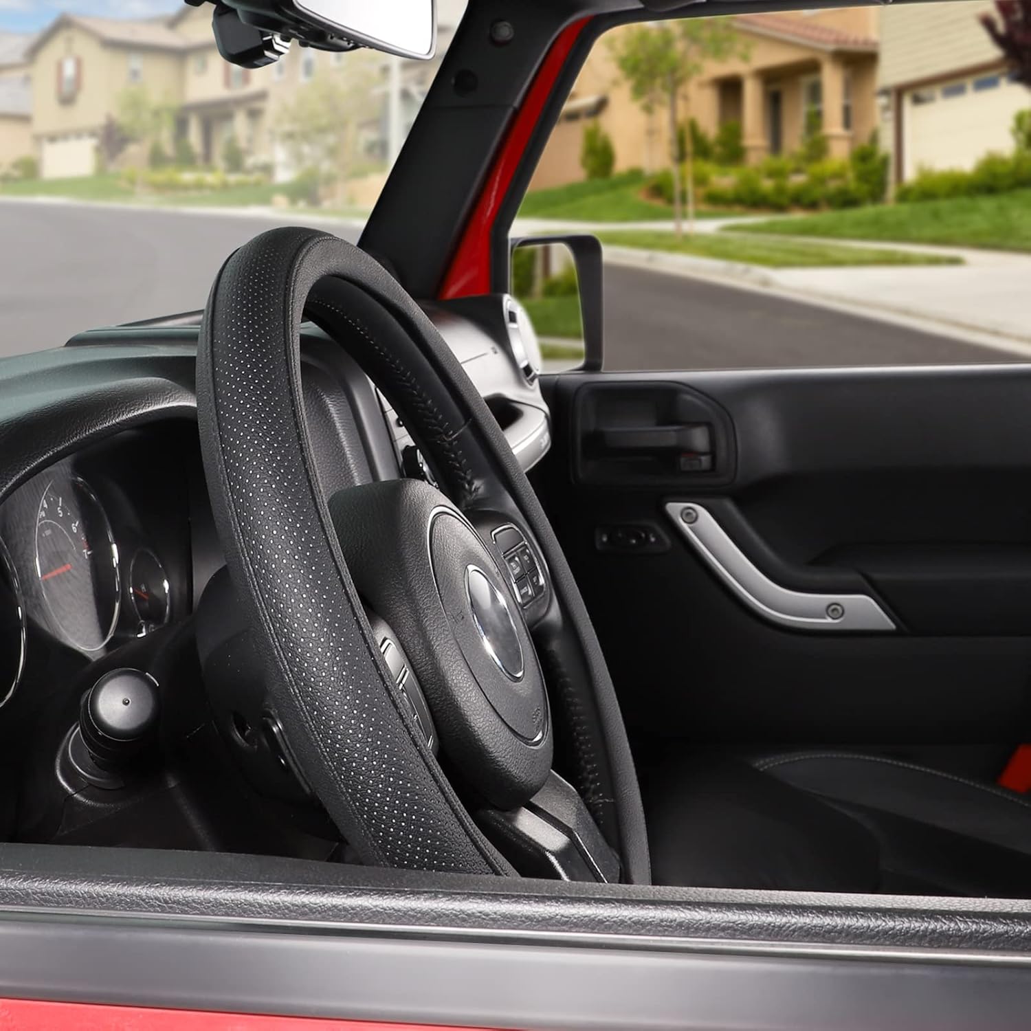 - ARMOR UP YOUR CAR: The durable and easy-to-install steering wheel cover is the premier option for covering an old or worn original factory steering wheel. The black material complements your car interior in a classic way.