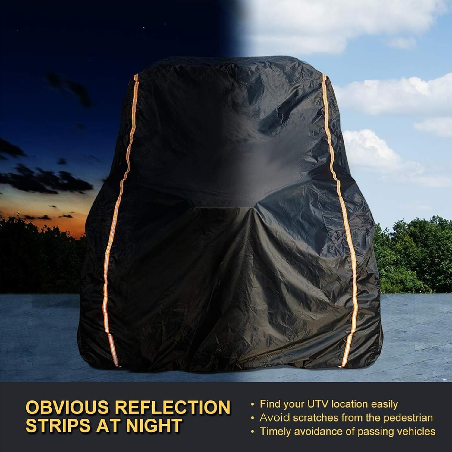 • Be Seen at Night: The 2 seater cover features long reflective strips on both sides, providing a large reflective surface area for more effective warning signals to prevent collisions after parking at night. With this cover, your UTV will always be pristine. Simply remove the cover, jump on, and go
