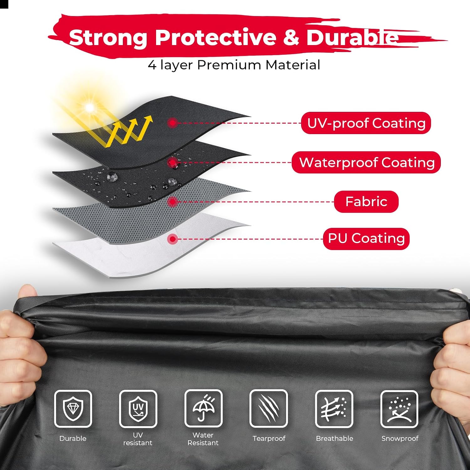 • Waterproof Oxford Cloth: Made from Oxford cloth with a waterproof PU and UV-resistant coating, our KEMIMOTO cover can withstand harsh conditions and prevent water seepage under 3000 Pa pressure. This keeps your SXS and rig protected from debris and weather damage, especially during the hot summer