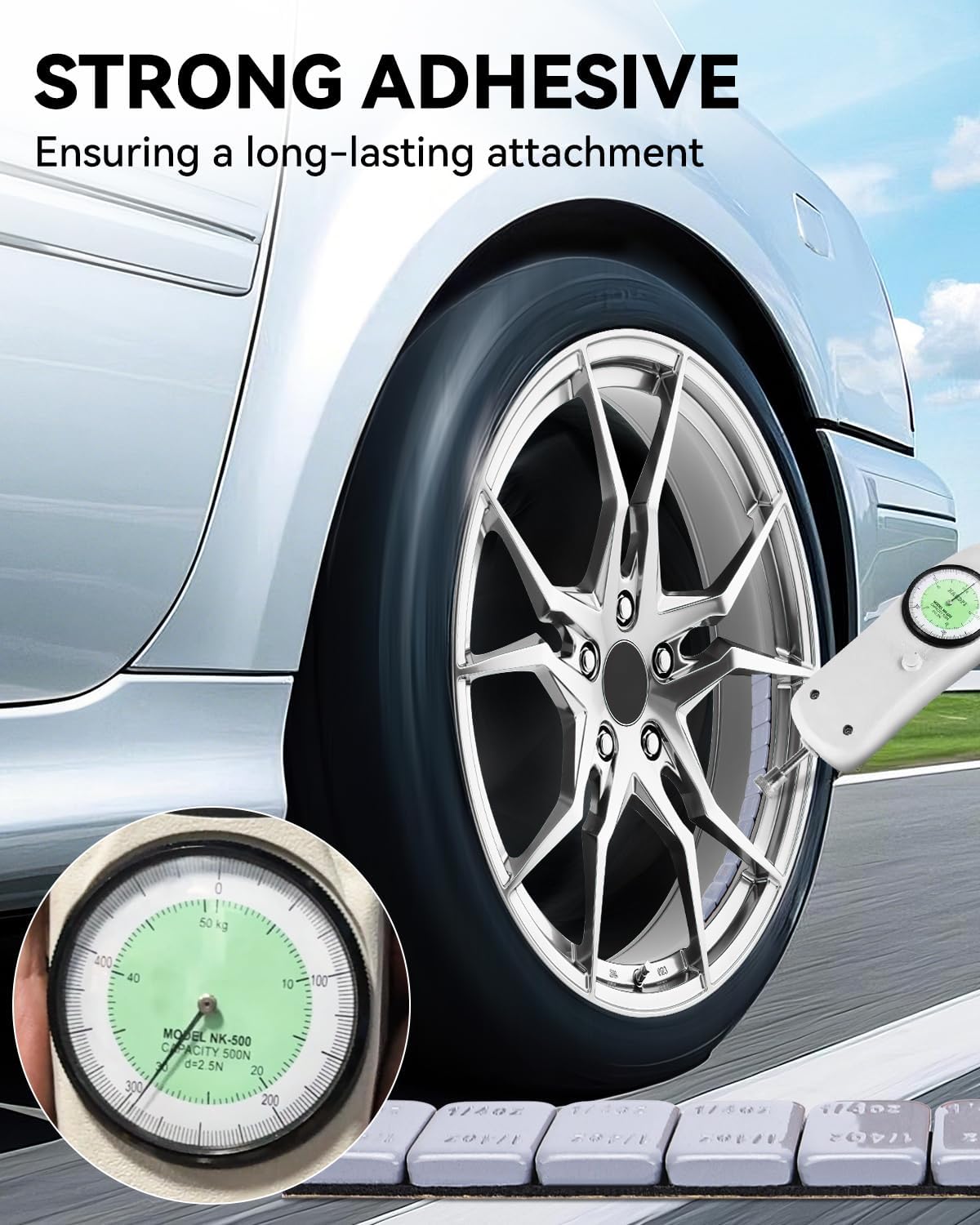 - Peel Off in 1 Second: Features a 2mm extended design, easy to peel backing makes adhering the weight to the tire simple and efficient, and it is flexible enough to fit any wheel shape and size