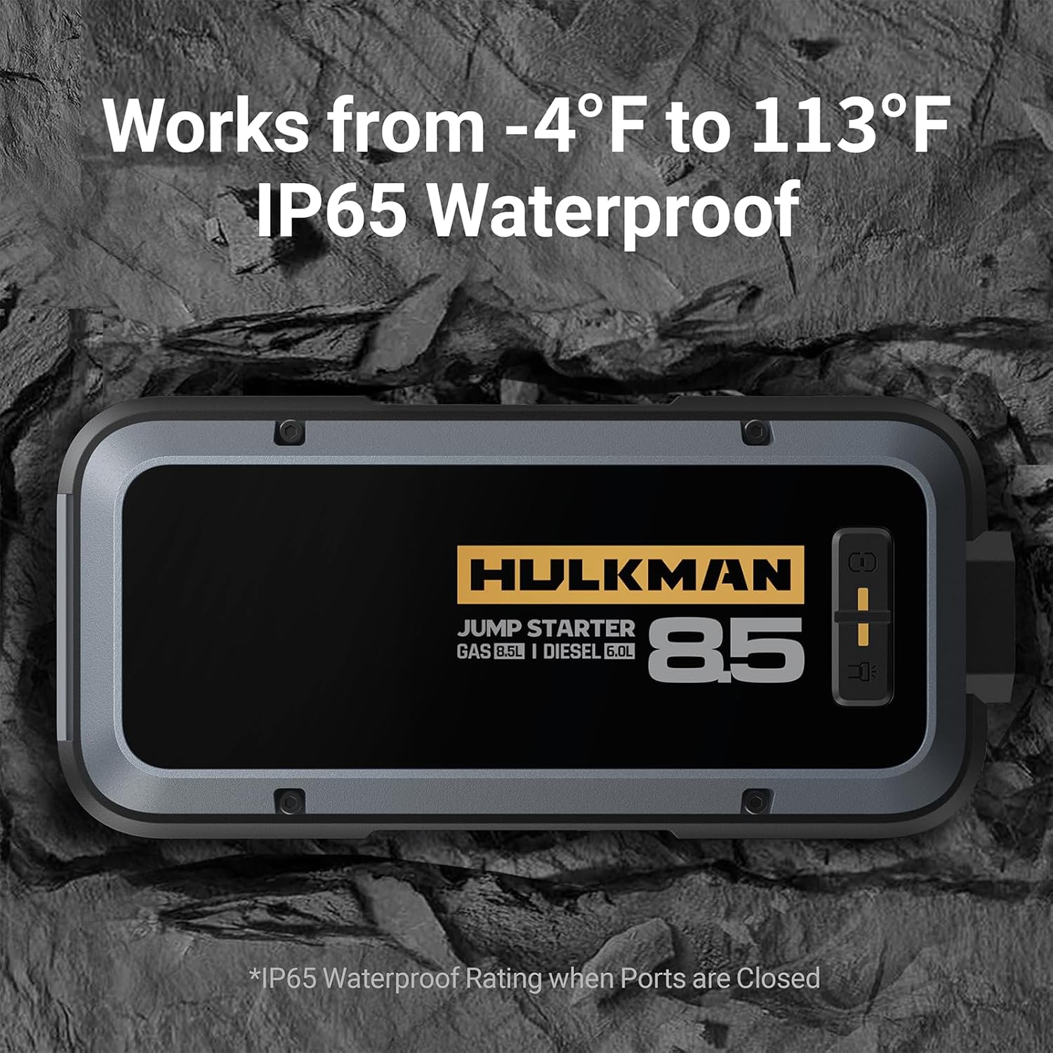 Hulkman Alpha85,Space Gray,2000A 74Wh Smart Jump Starter,12V Portable Car Battery Booster with 3.3" Display,USB-C Power Pack,5-Mode Flashlight,Jumper Cables for up to 8.5L Gas/6.0L Diesel