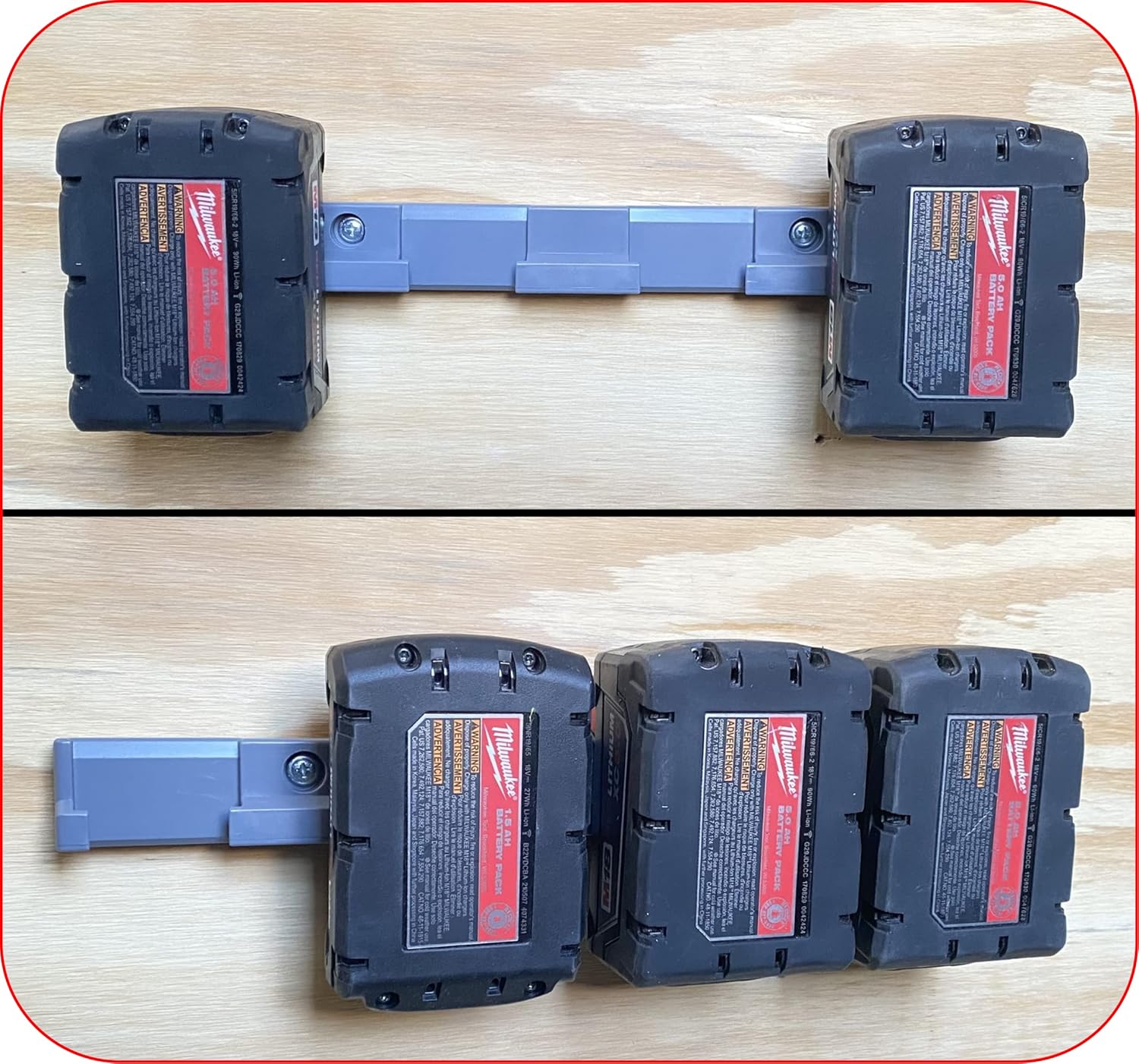 Milwaukee M18 Battery Holder | 4x 18V Battery Storage | Wall Mount | Grey ABS | 0.75 x 1.5 x 12" | Heat Resistant | USA