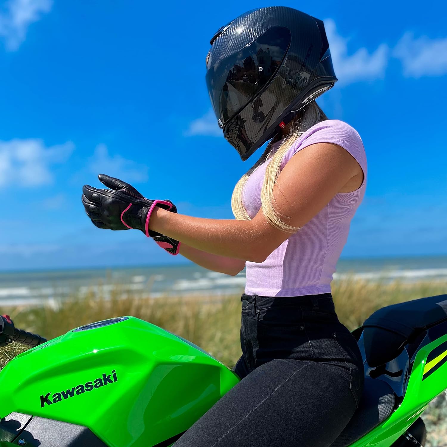 Harssidanzar Women's Motorcycle Gloves,Leather Motorcycle Gloves, Motorbike Gloves, Road Racing, Cycling, Climbing, Powersports Gloves Touchscreen GL016