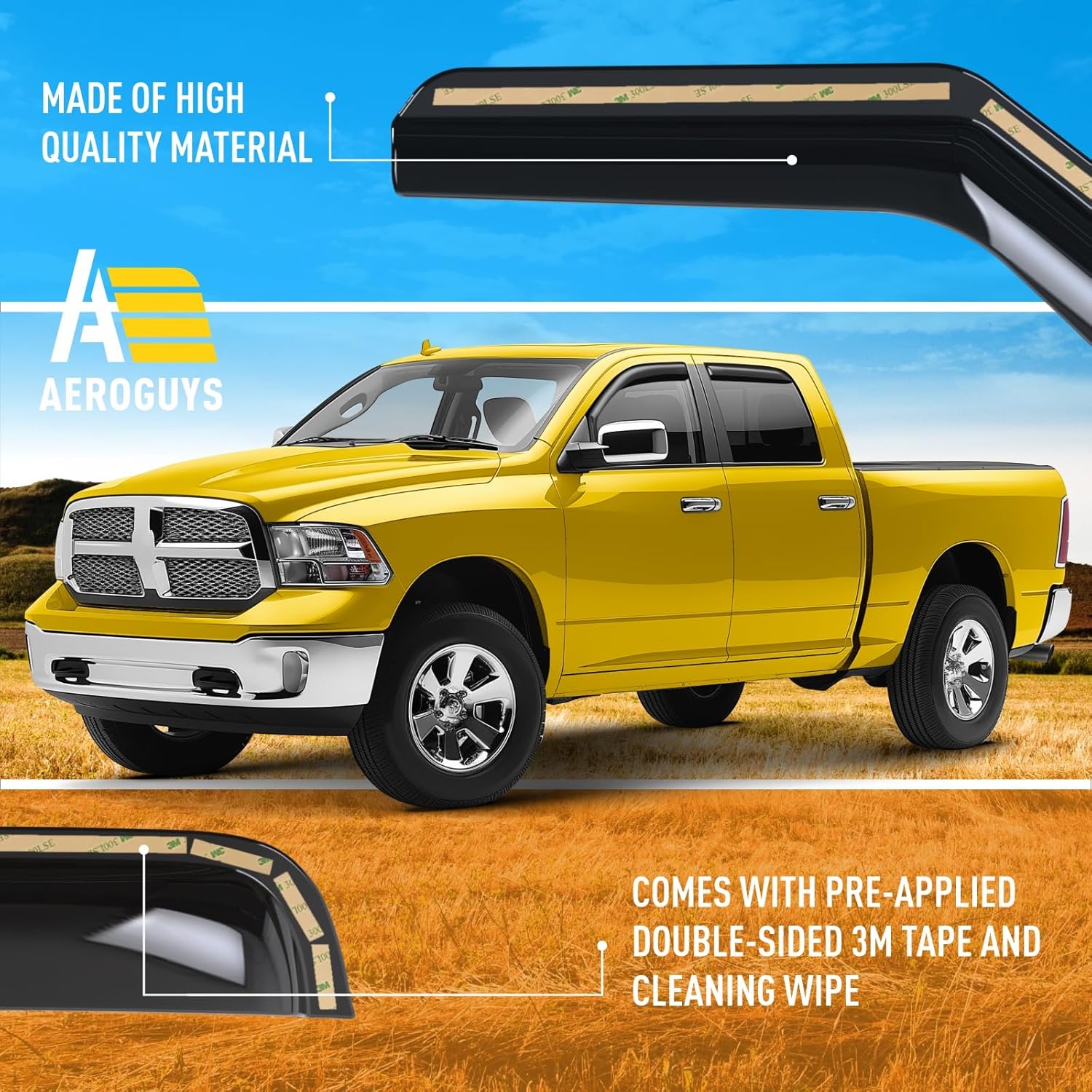 - Incredibly Durable AEROGUYS Auto Window Deflectors โ They are made with strong and tough polycarbonate which is clear and scratch-resistant. They also provide UV protection making your ride more comfortable under all weather conditions.