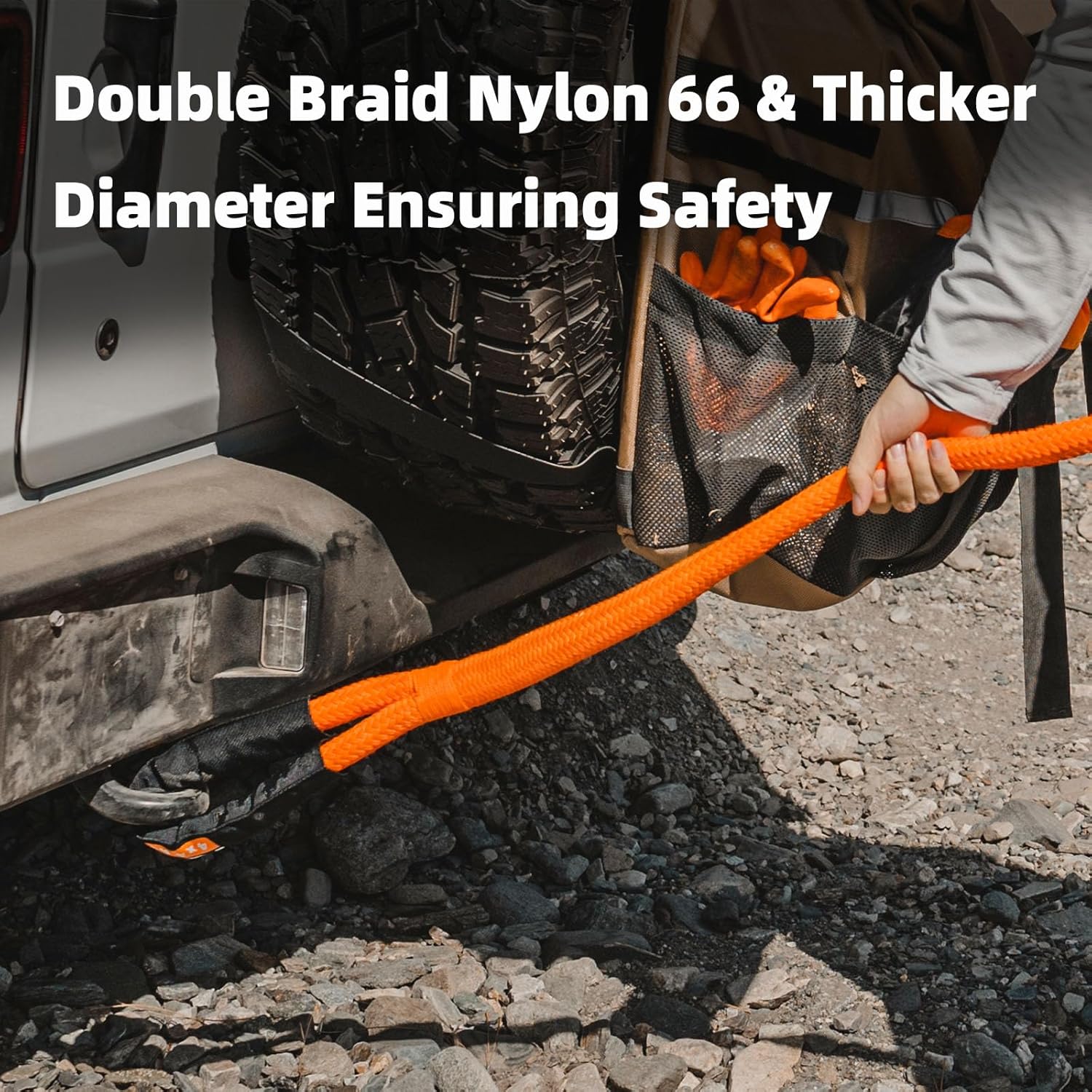 - 【WHY YOU NEED IT】 Four-wheelers got stuck in sticky mud, Overlanders lost tire traction in sand dunes, Rock Crawlers lacking of engine torque to go over large boulders. A set of ALL-TOP Kinetic Recovery Rope will settle all these up by its Kinetic Snatching Force. And such perfect recovery gear is just kept in a rain-proof easy carry bag.