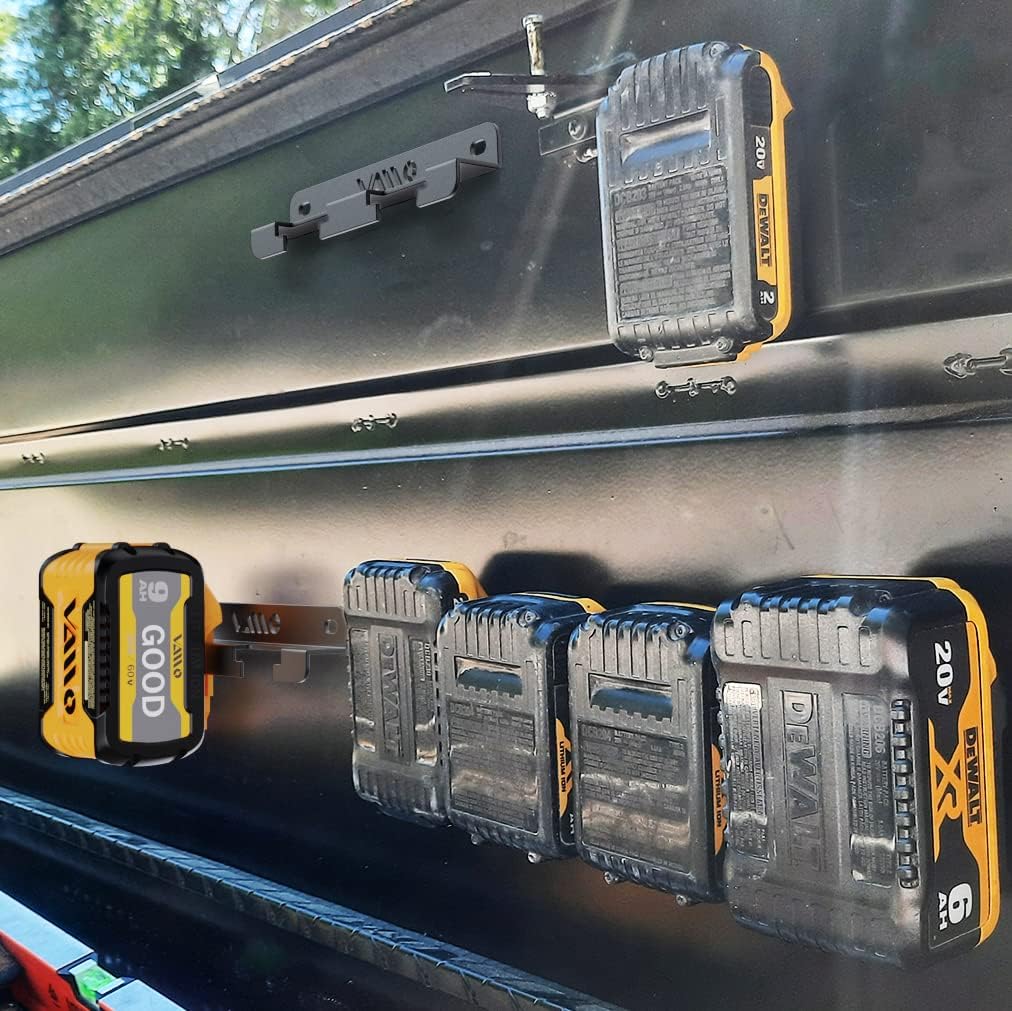 - PERFECT BATTERY STORAGE RACK: This Battery Holder is fully compatible with DeWalt 20V 60V 12V batteries, and can firmly fix your battery pack without dropping. It can store two batteries at the same time with enough space between them.