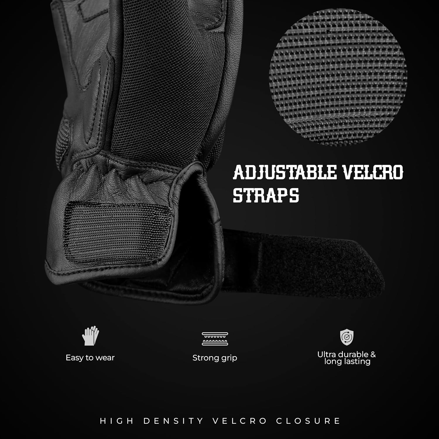 - Superior Knuckle Protection: Premium leather motorcycle gloves with hard knuckles guards for maximum impact resistance and safety during rides. They have TPU finger protectors and TPU Gel palm padded sliders that provides excellent protection in case of an accident.
