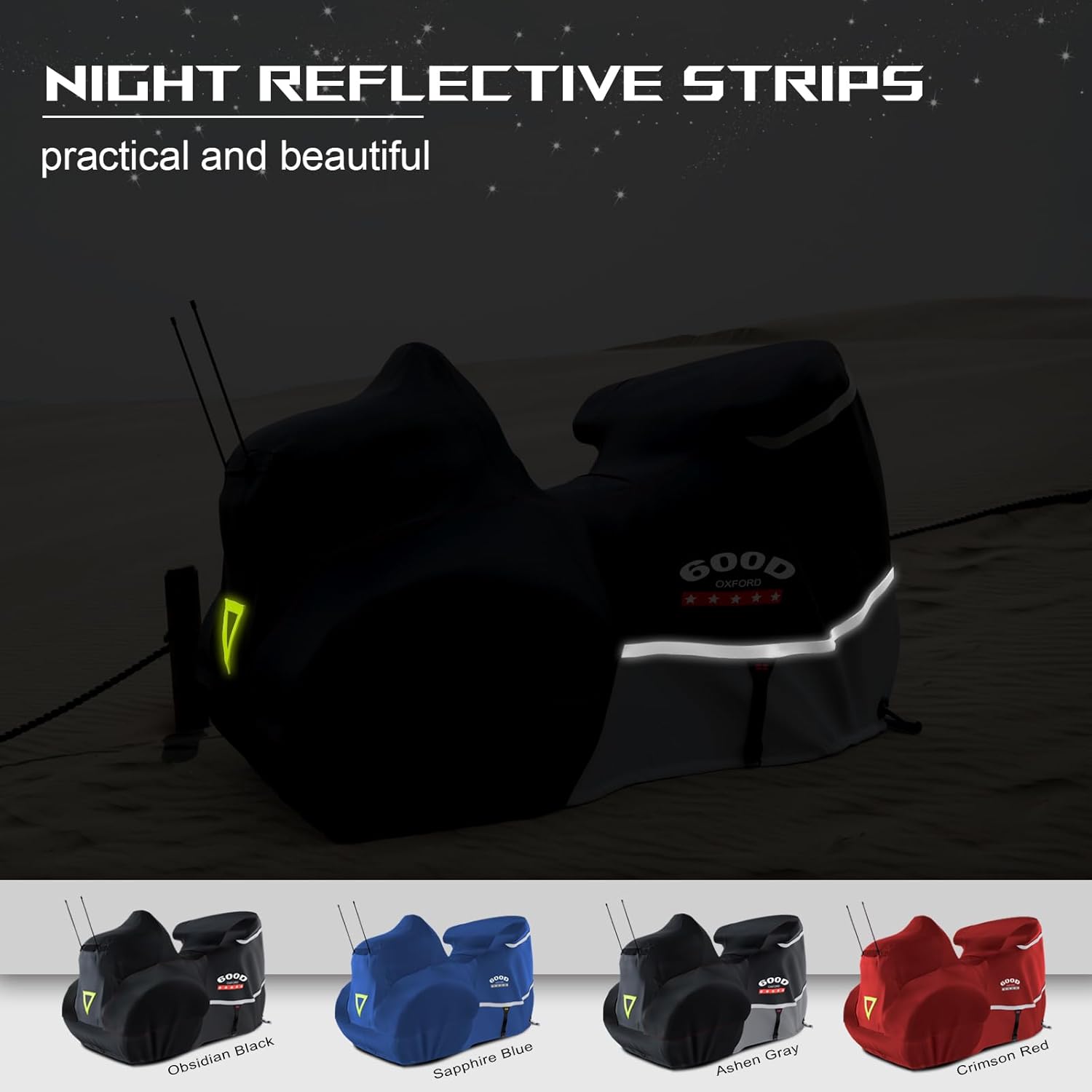 - đ”ă100% 600D Oxford clothă: The trike cover, weighing 9.5lb, is almost thicker and solider than those on the market. The fabric is resistant to aging and ripping, and UV proof, dustproof and rainproof.