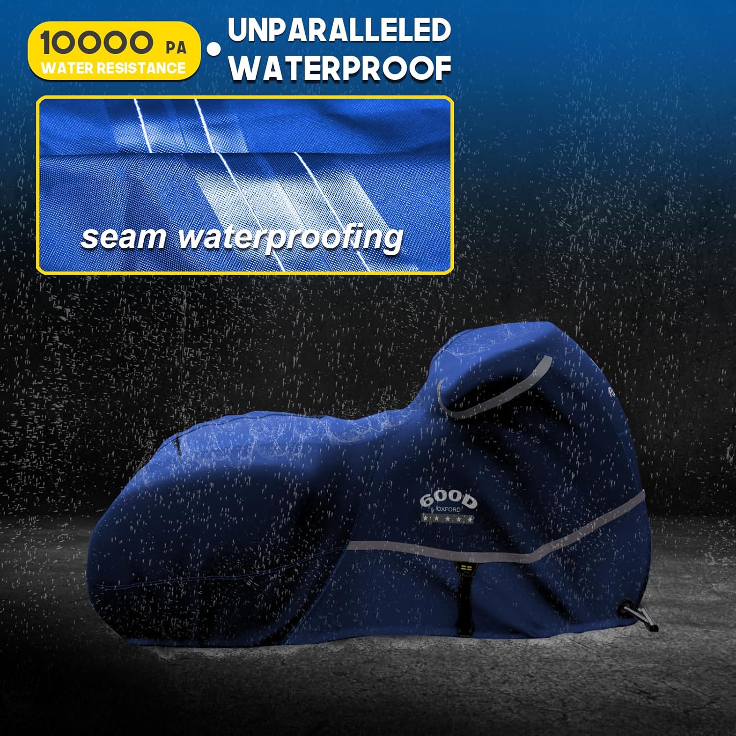 Rosefray Motorcycle Cover with Side Box Heavy Duty 600D Waterproof for Touring Models Harley Davidson Road King,Road Glide,Street Glide, Electra Glide,Low Rider-ST Indoor & Outdoor Storage Blue