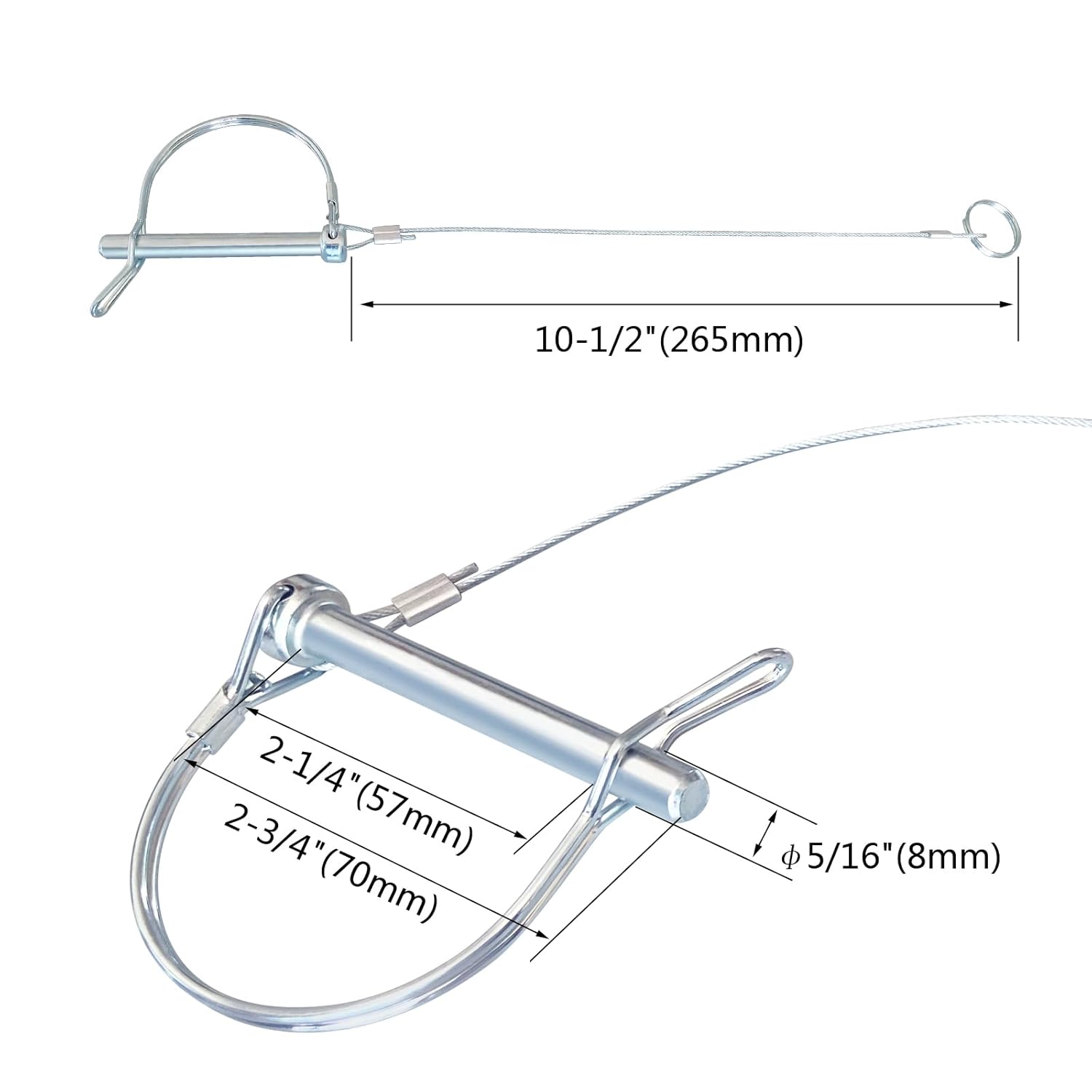 Trailer Coupler Pin 5/16-Inch Diameter x 2-3/4-Inch Long Trailer Pins with Plastic Coating Tether Quick Release Ring - 10Pcs 11-1/2" Length