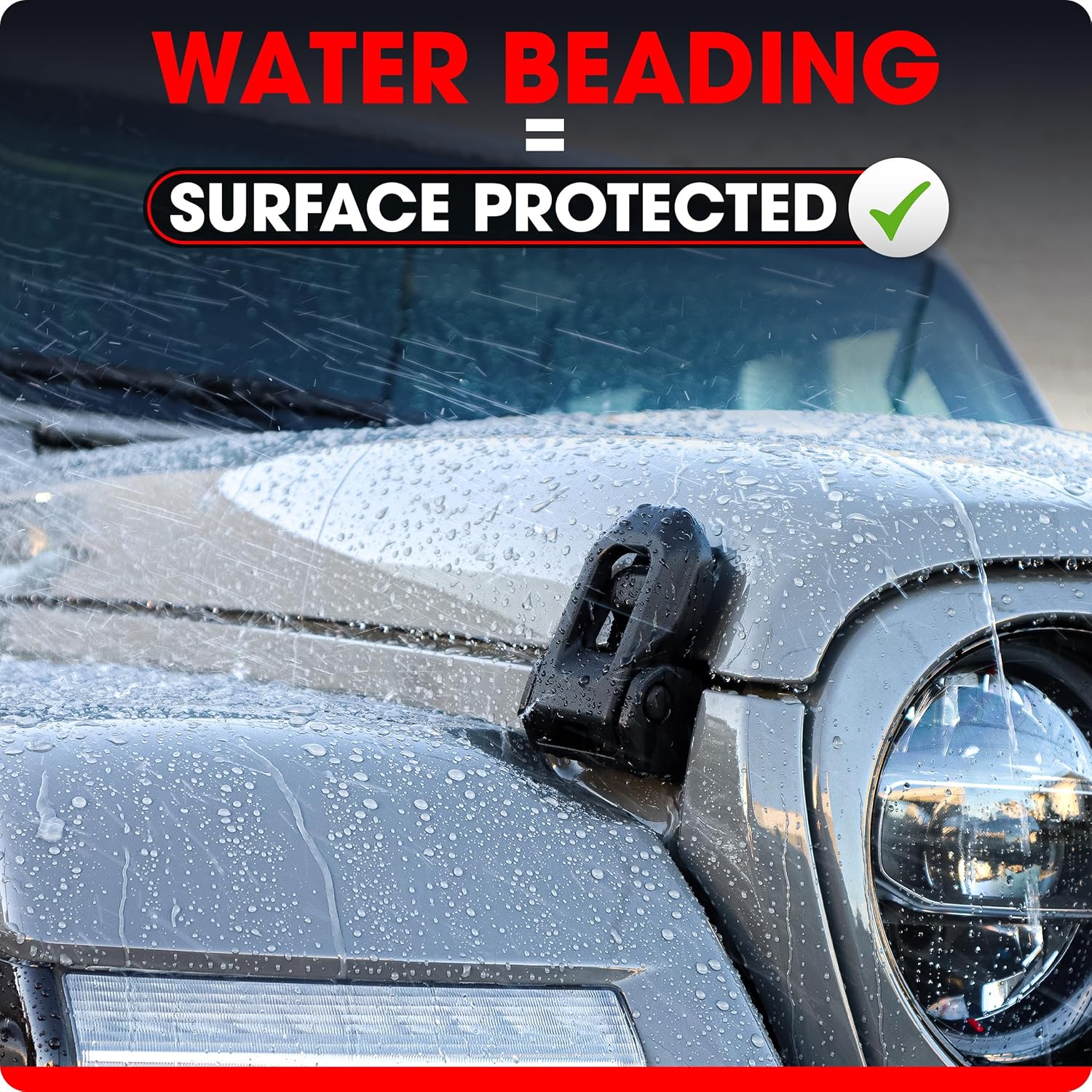 - ✅SiO2 CERAMIC PROTECTION: Create a slick hydrophobic protective layer with extreme water beading action while protecting your vehicle from UV rays, dirt, debris, and other road contaminants.