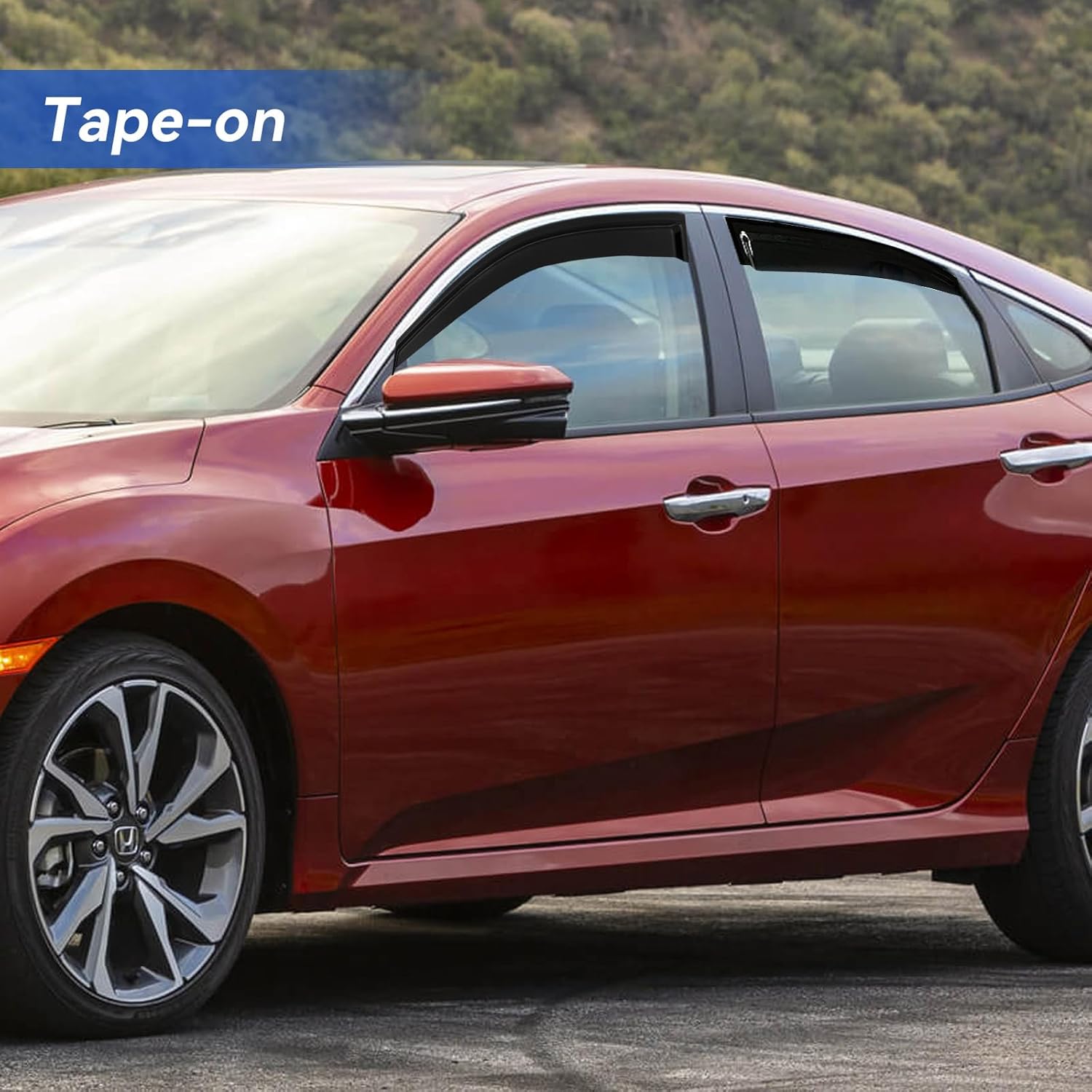 - 【Perfect Fit】YQAUTEC Out-channel Window Visors Rain Guards Shield for 2022 2023 2024 2025 22 23 24 25 Honda Civic LX EX SI HPT Sport Touring, Side Window Vent Wind Deflectors Visors Shades. For Sedan ONLY.