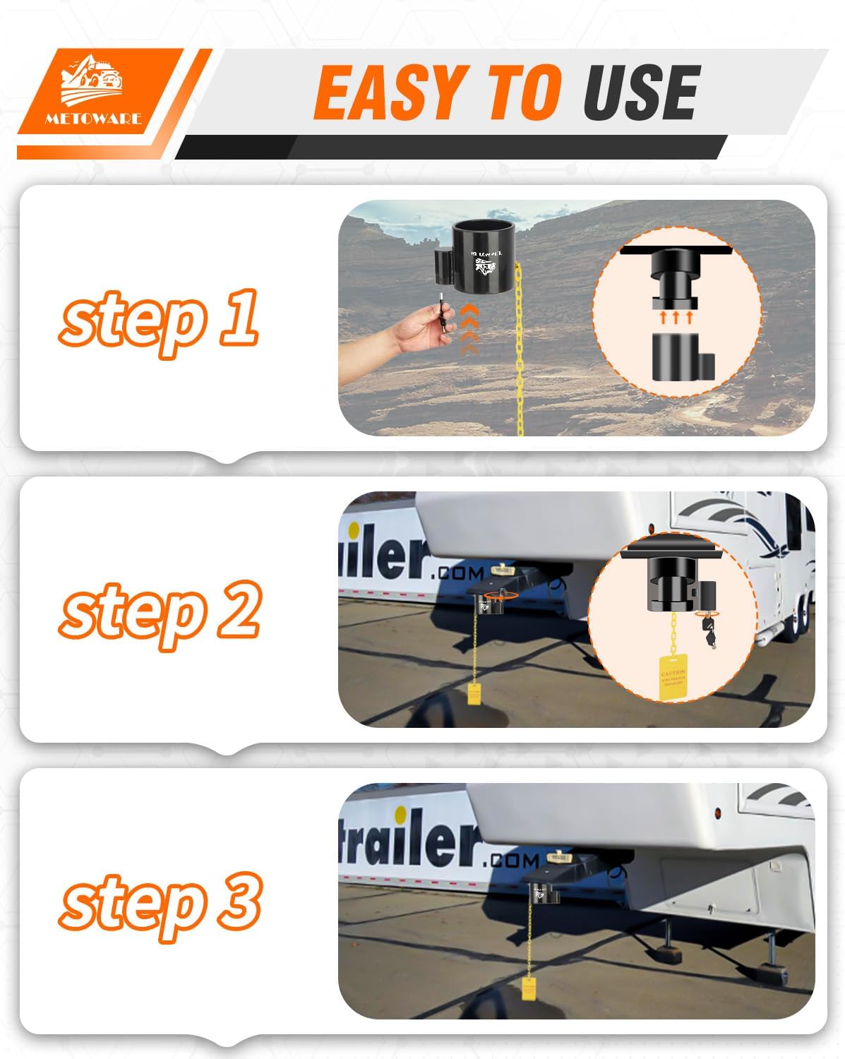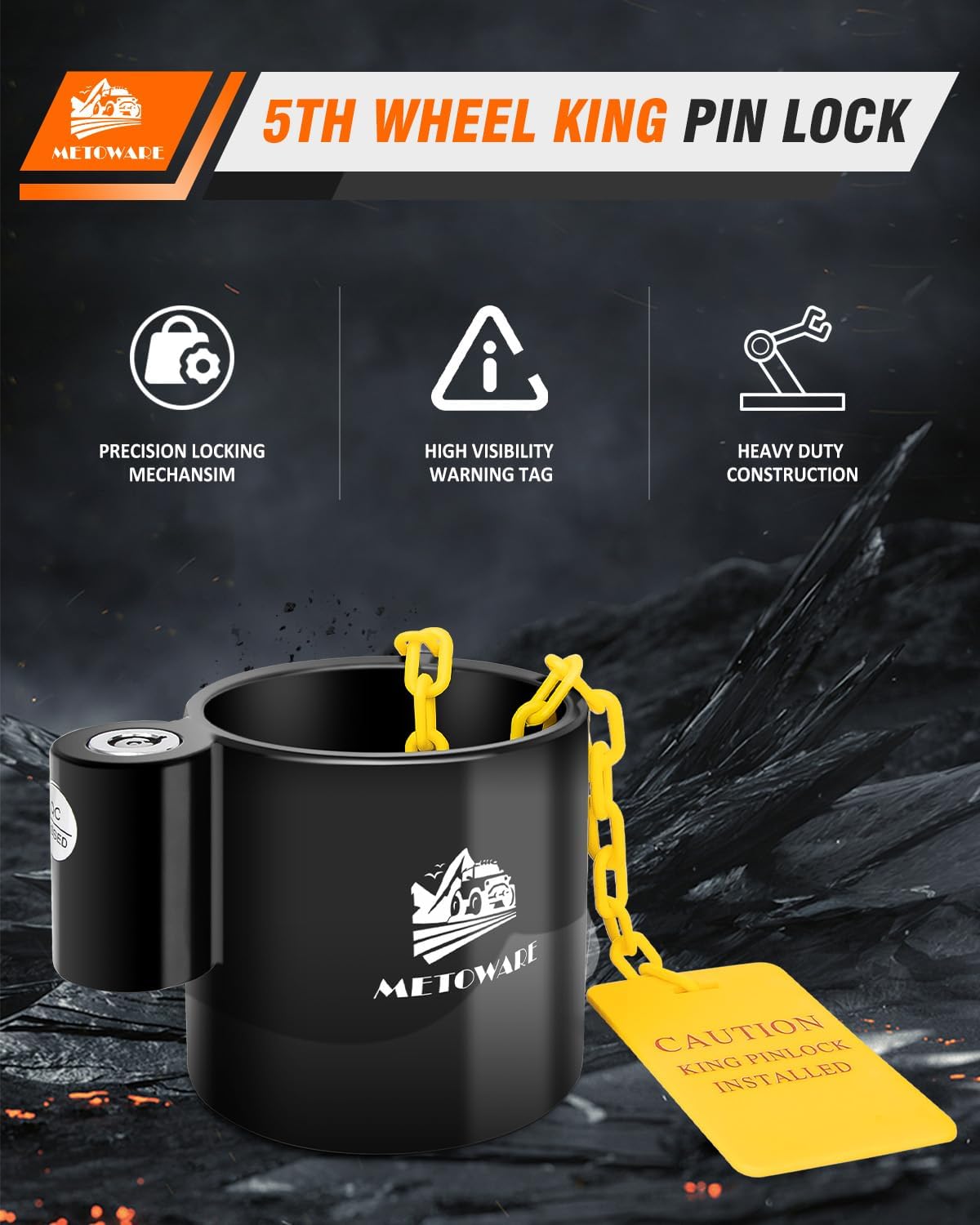 METOWARE 5th Wheel King Pin Lock with Warning Tag for 5th Wheel, RVs, Semi Trailers and Campers (Black)