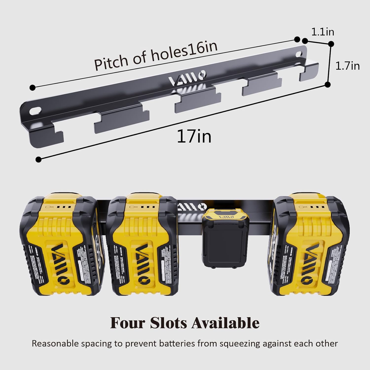- PERFECT BATTERY STORAGE RACK: This Battery Holder is fully compatible with DeWait 20V 60V 12V batteries, and can firmly fix your battery pack without dropping. It can store four batteries at the same time with enough space between them.