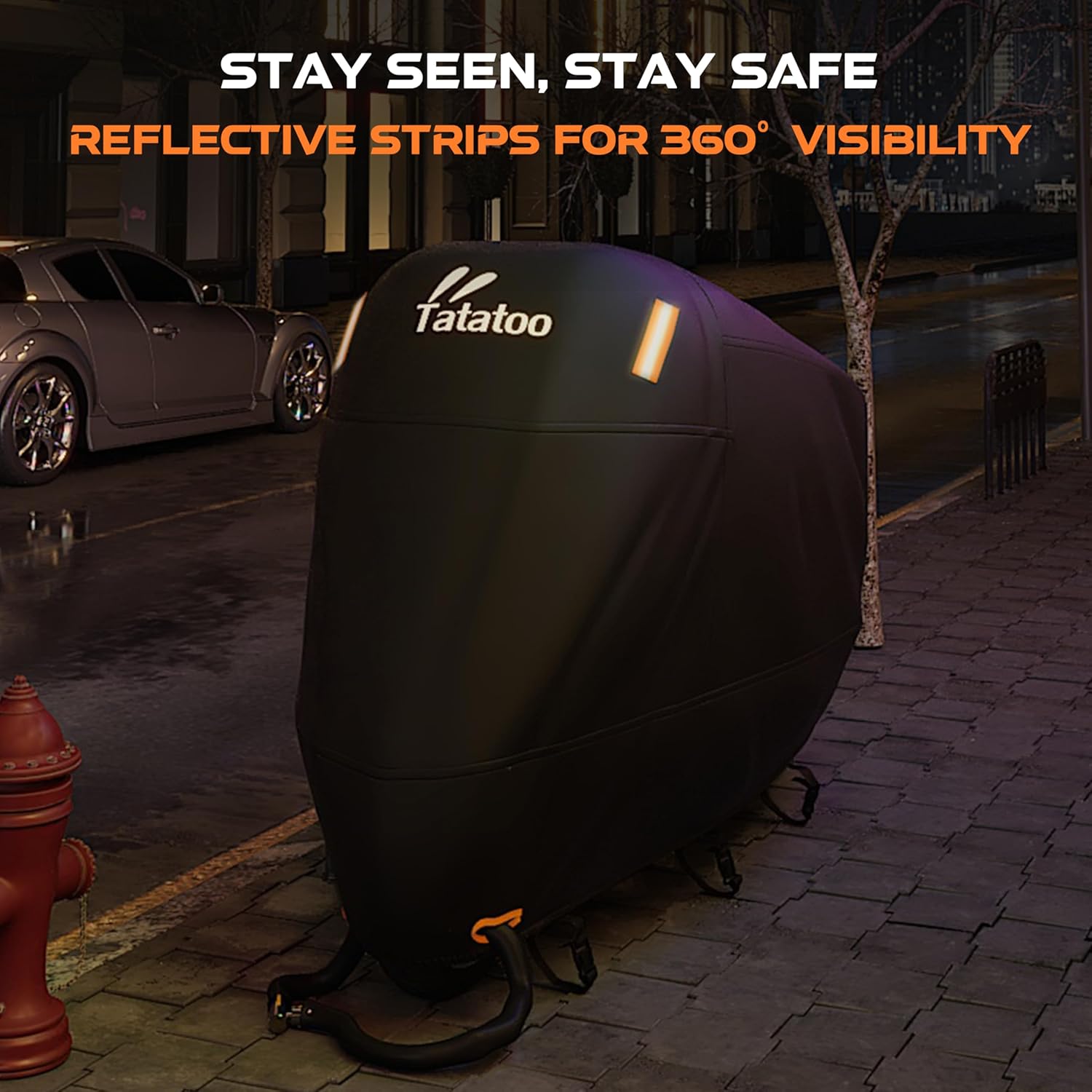 - ăQuality MaterialăThe Tatatoo motorcycle cover is crafted from upgraded 300D Oxford fabric, designed to resist friction, scratches, and everyday wear and tear, ensuring long-term protection for your motorcycle.