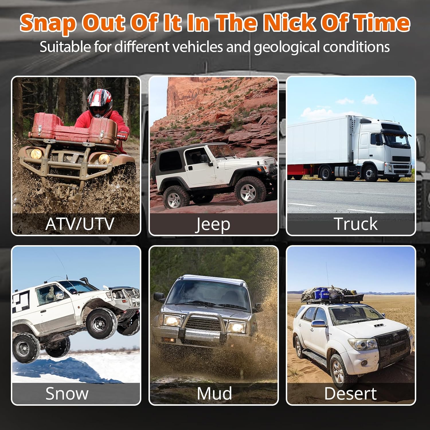 - Enhanced Heavy-Duty Towing Gear: 1 INCH BOOSTED TO 1.26 INCHES, our ultimate recovery rope turn to sturdier and stronger. Lab tested and certified up to 55,000 lbs breaking strength, outperforms wire winch ropes by 45%.Stretch and store 4x more energy than a tow strap, efficiently recovers vehicles of all sizes including Jeeps, off-roader, SUVs, boats, ATVs, trucks, trailer recovery/towing/snatch straps, tractors, pickups, farming, tree savers, and sport-utility vehicles,etc