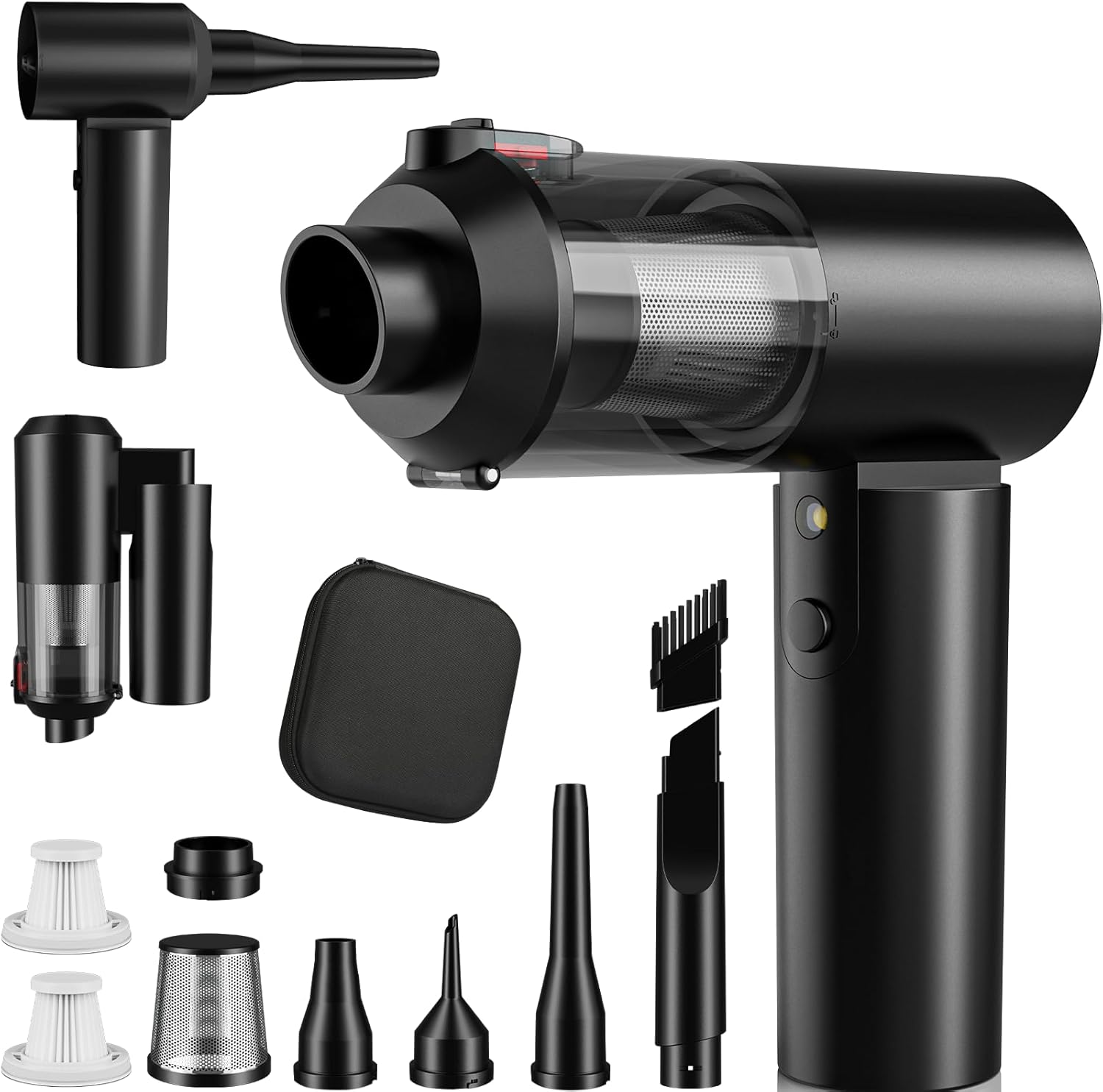 - 【Upgraded Car Vacuum】The car vacuum portable cordless adopts upgraded 90W high power pure copper brushless motor with lower noise, higher performance, longer service life. The handheld car vacuum with upto 16000Pa suction power and 80000 rpm speed can quickly clean hidden pet hair, dust, sand, etc. 2 gear adjustable suction modes can meet your cleaning needs in different scenarios.