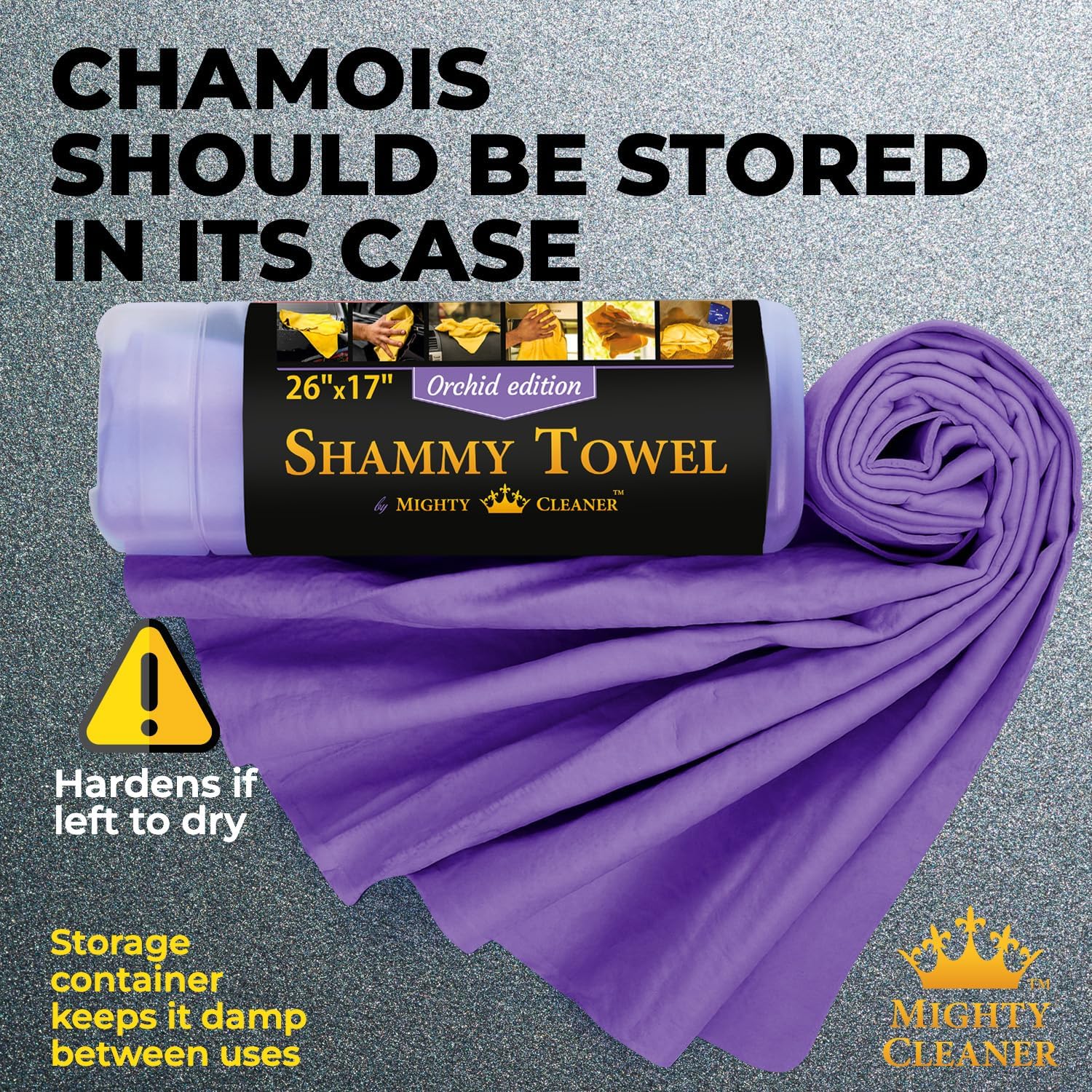 - EXCELLENT ABSORBENCY - The Mighty Cleaner chamois towel for car care quickly absorbs and holds large amounts of water, leaving your car’s finish spotless and streak-free. Our shammy cloth for car drying works like a sponge and a towel in one for cleaning occasional spills.