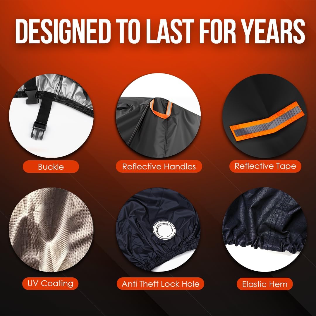 - UV Protection & Premium Material: Crafted from 210D heavy-duty oxford fabric with an inner silver UV lining, this cover offers exceptional protection against the sun’s harsh rays, preventing fading and deterioration over time.