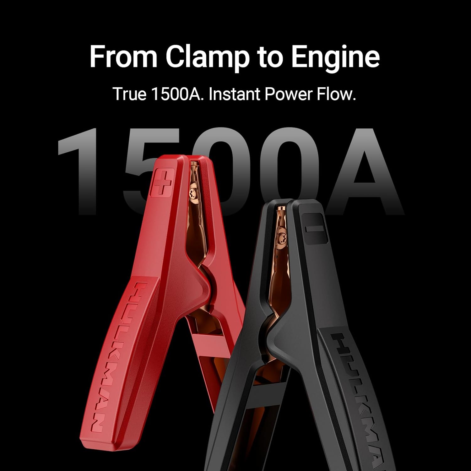 - [Start Dead Batteries] Delivers true 1500A peak current from the clampsâenough to jump start 7.5L Gas/4.5L Diesel engines.