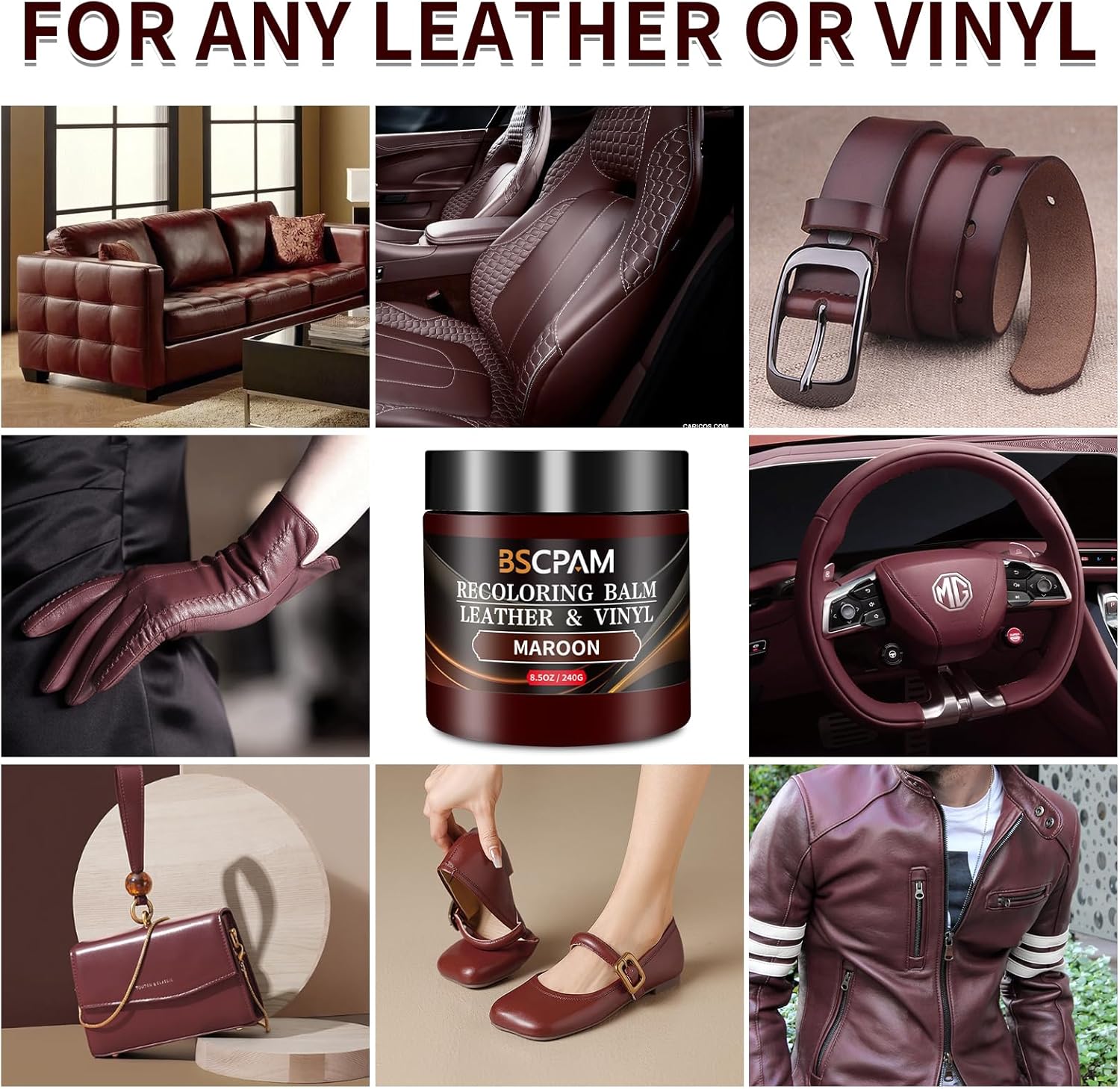 Maroon Leather Recoloring Balm,Leather Couch Scratch/Stain Remover,Leather Repair kit for Vinyl Furniture and Car Interior,Leather Dye Paint for Scratched and Faded Leather Couches