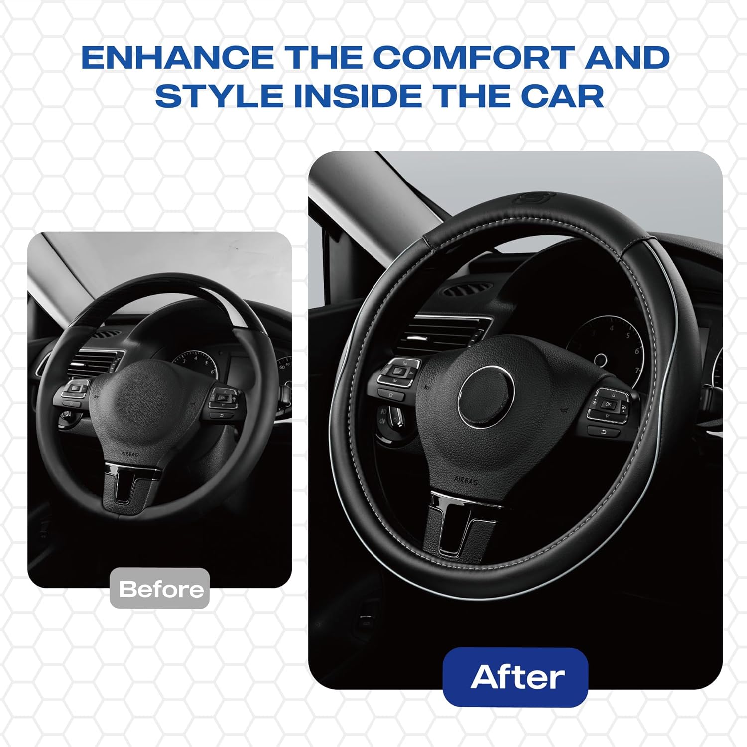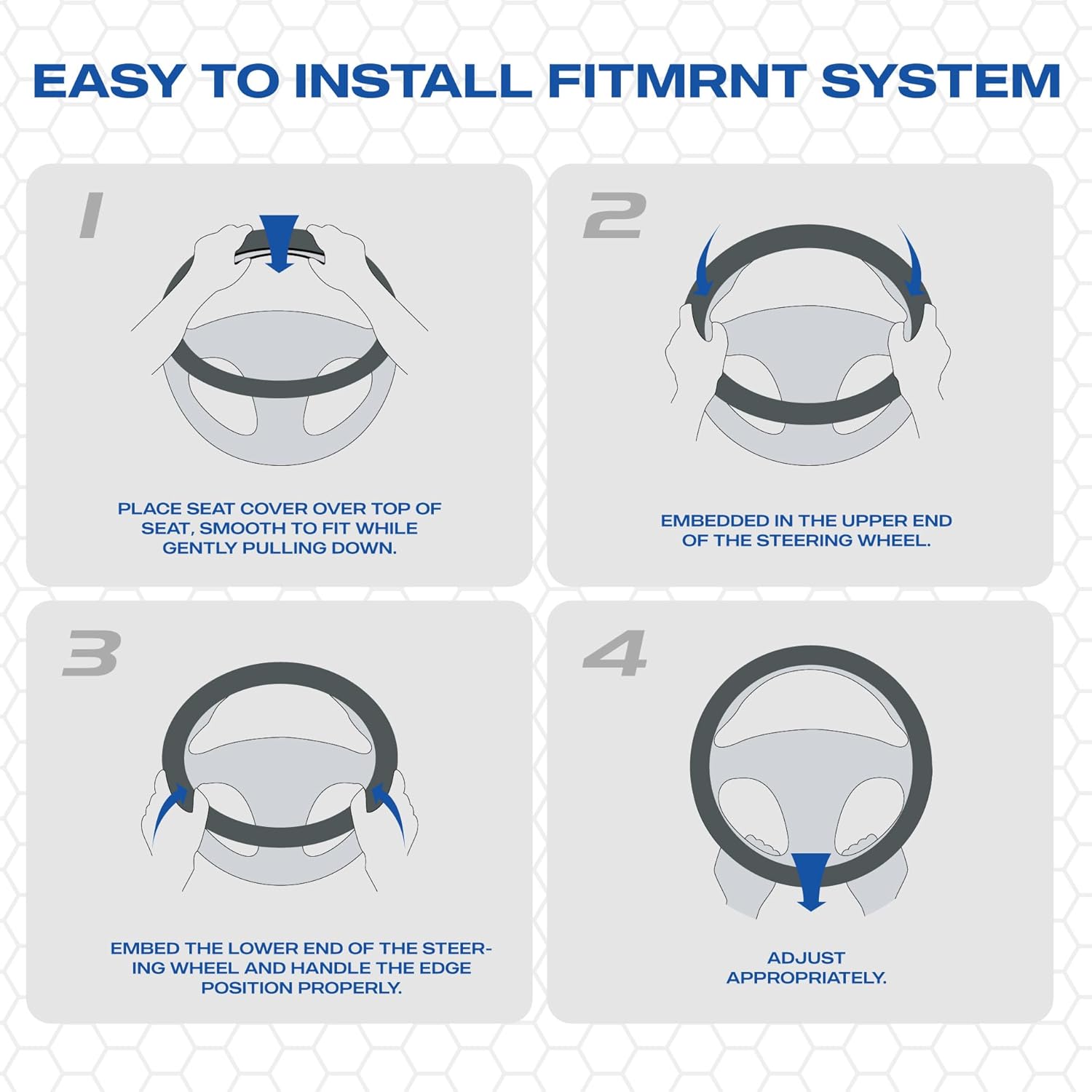 - EASY INSTALLATION-Skechers car steering wheel cover is easy to install with 3 steps. Just cover the steering wheel with the product from the top, pull it to cover the whole steering wheel, and adjust the product to snugly fit on the steering wheel.