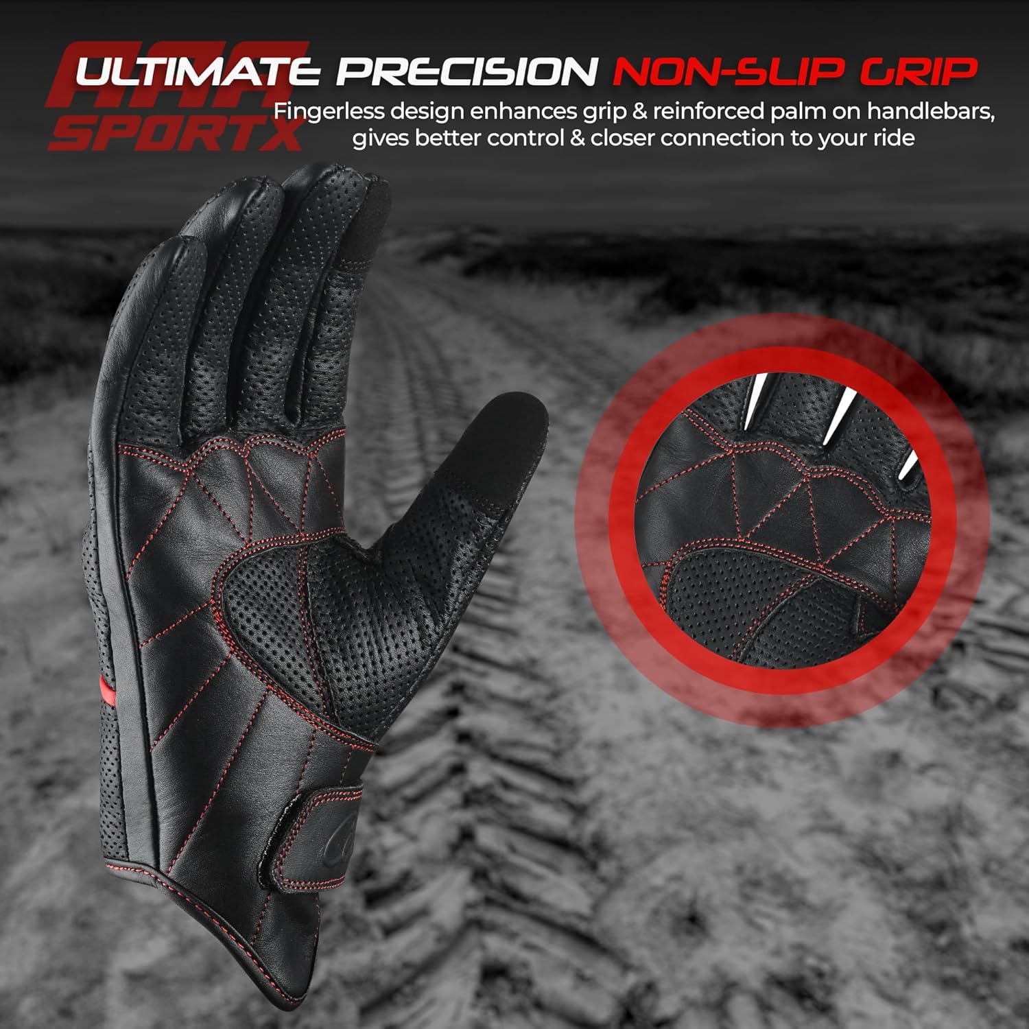 - LEATHER MOTORCYCLE GLOVES - aaasportx Best Motorcycle Gloves are made of Genuine Leather. Our Lightweight Motorcycle Gloves ensures durability through a variety of situations. aaasportx Motorcycle Gloves for Men offer a high-quality, stylish, and durable finish that excludes sophistication and toughness on the road.