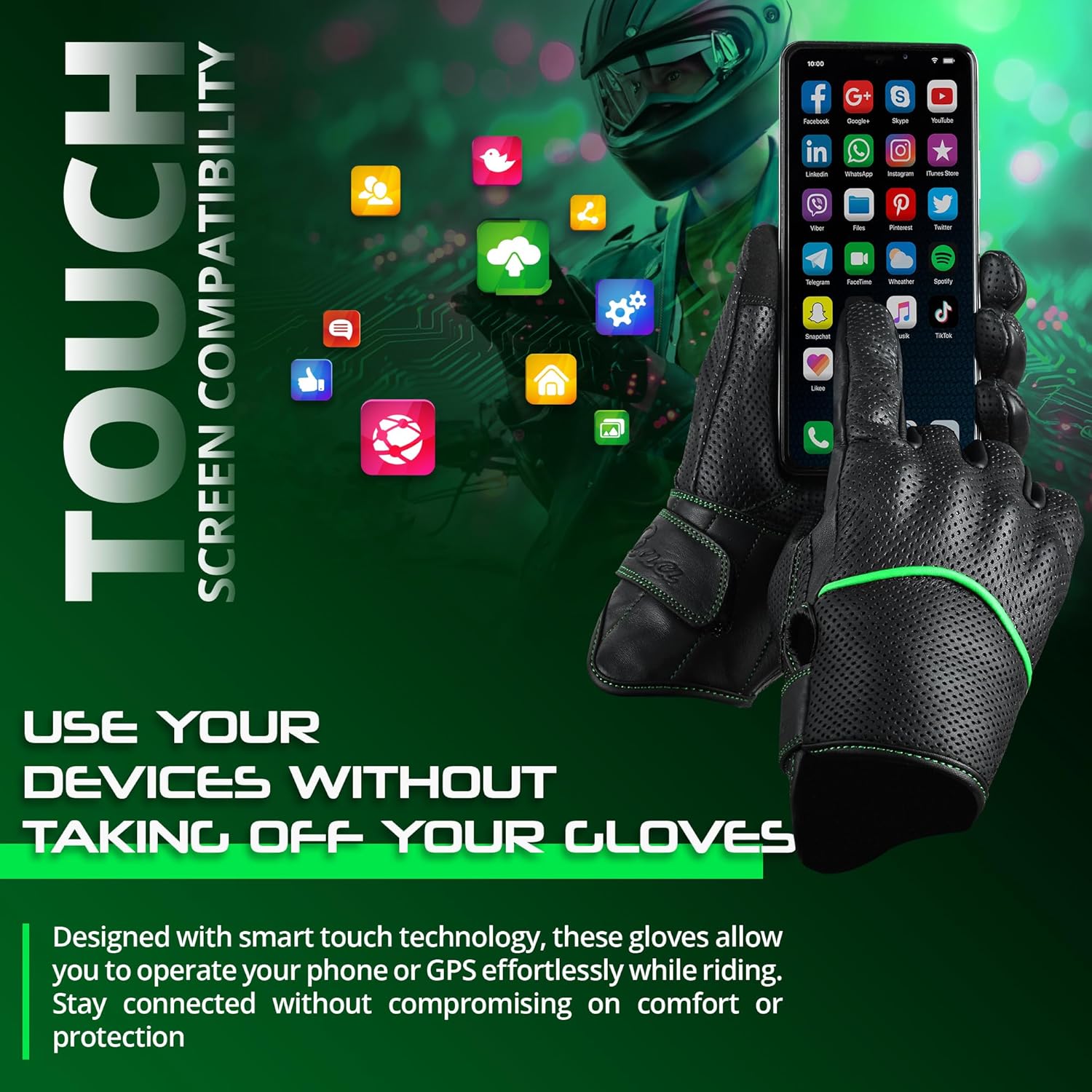 - LEATHER MOTORCYCLE GLOVES - aaasportx black green Motorcycle Gloves are made of Genuine Leather. Our Lightweight Motorcycle Gloves ensures durability through a variety of situations. aaasportx Motorcycle Gloves for Men offer a high-quality, stylish, and durable finish that excludes sophistication and toughness on the road.