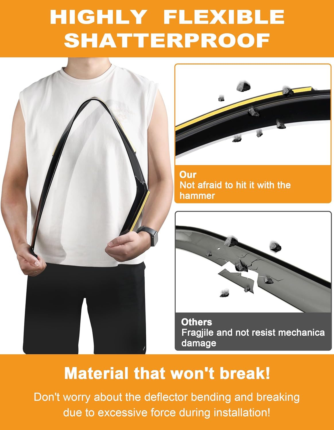 - ăExtra-Durable PolycarbonateăDeejecsun Window Deflectors made of long-lasting shatterproof material, offer ultimate protection against heat, wind, rain, and environmental damage, ensuring a safe and comfortable journey .