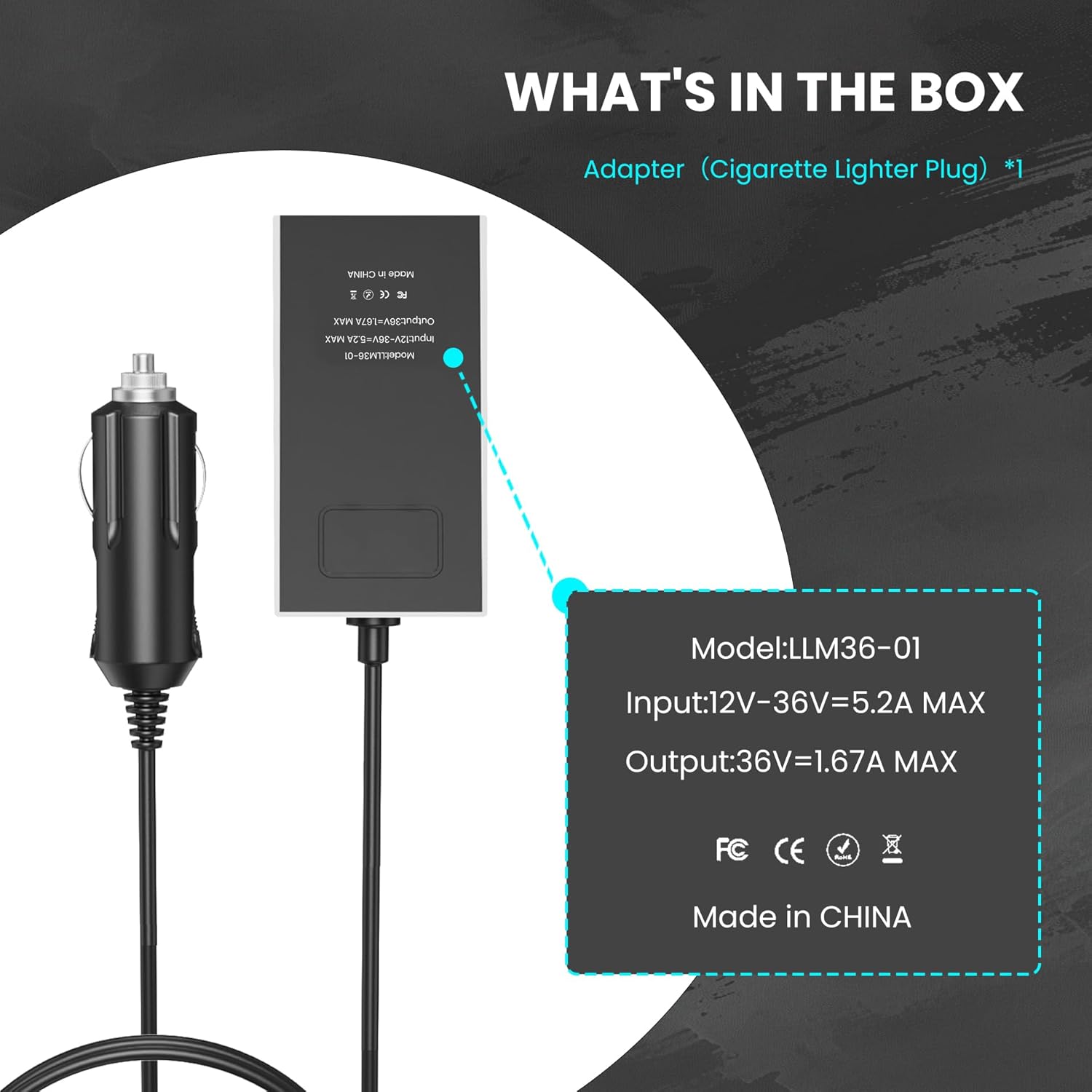 Car Charger/Car Power Adapter for Starlink Mini, 12V/24V/36V Cigarette Lighter Adapter with 20 AWG 40inch Cable on Car/Truck/RV/Boat, Step-Up Converter, Support 60M/200FT Extended Range