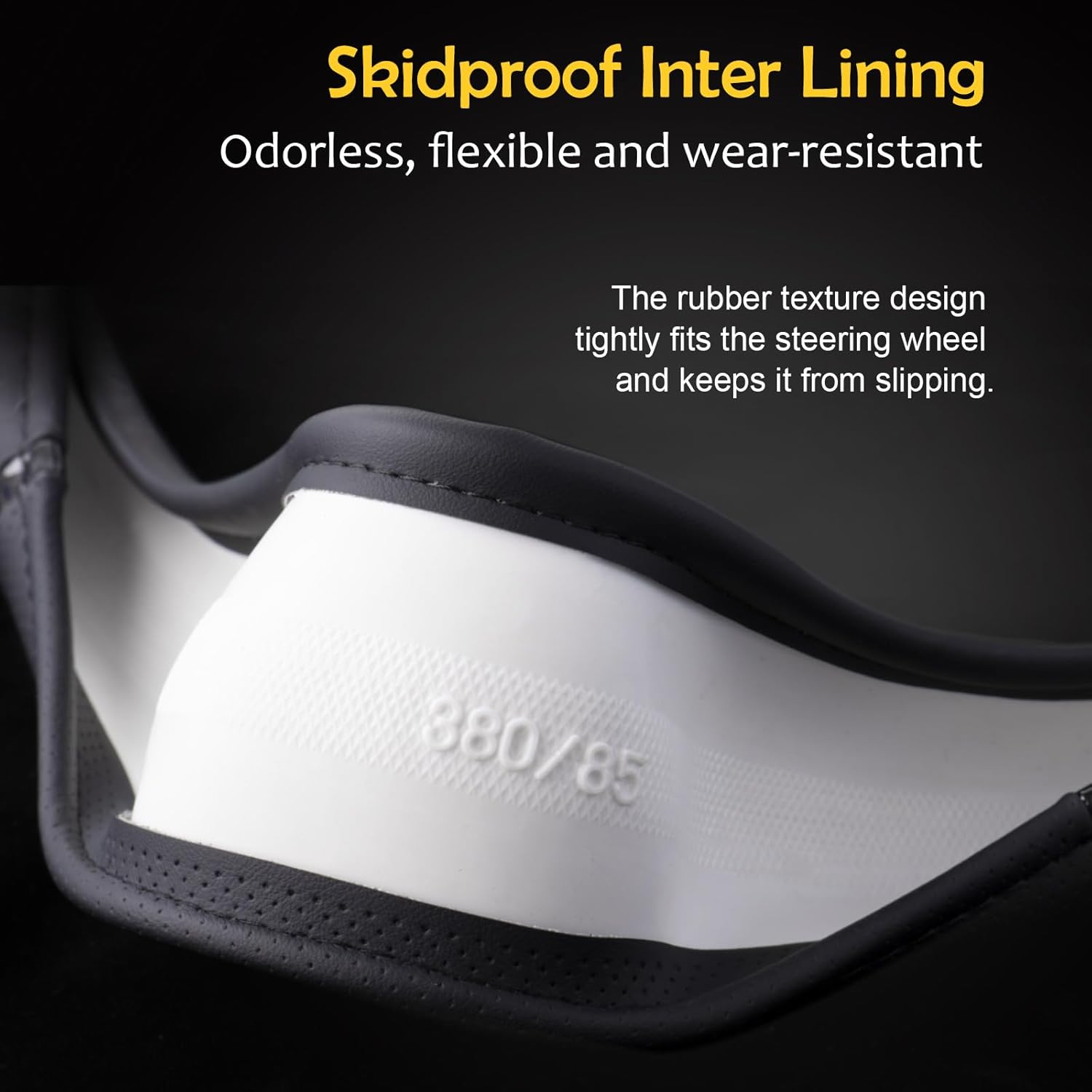 - Premium Materials: The black and gray steering wheel cover is made of microfiber leather, firm, durable and comfortable. Flexible and smooth stitching, not easy to fall off, meets your high requirements for driving