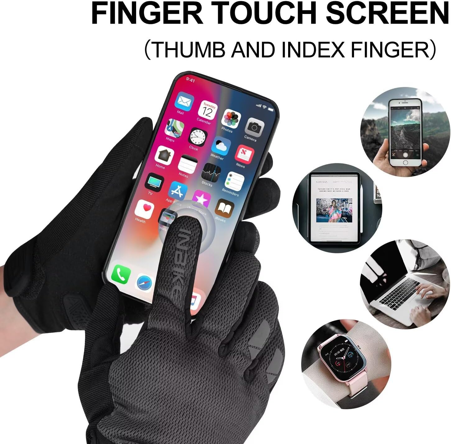 - β[Touchscreen]: This riding gloves use touchscreen material on both the thumb and index finger tips, allowing you to use a touchscreen device without removing your gloves.