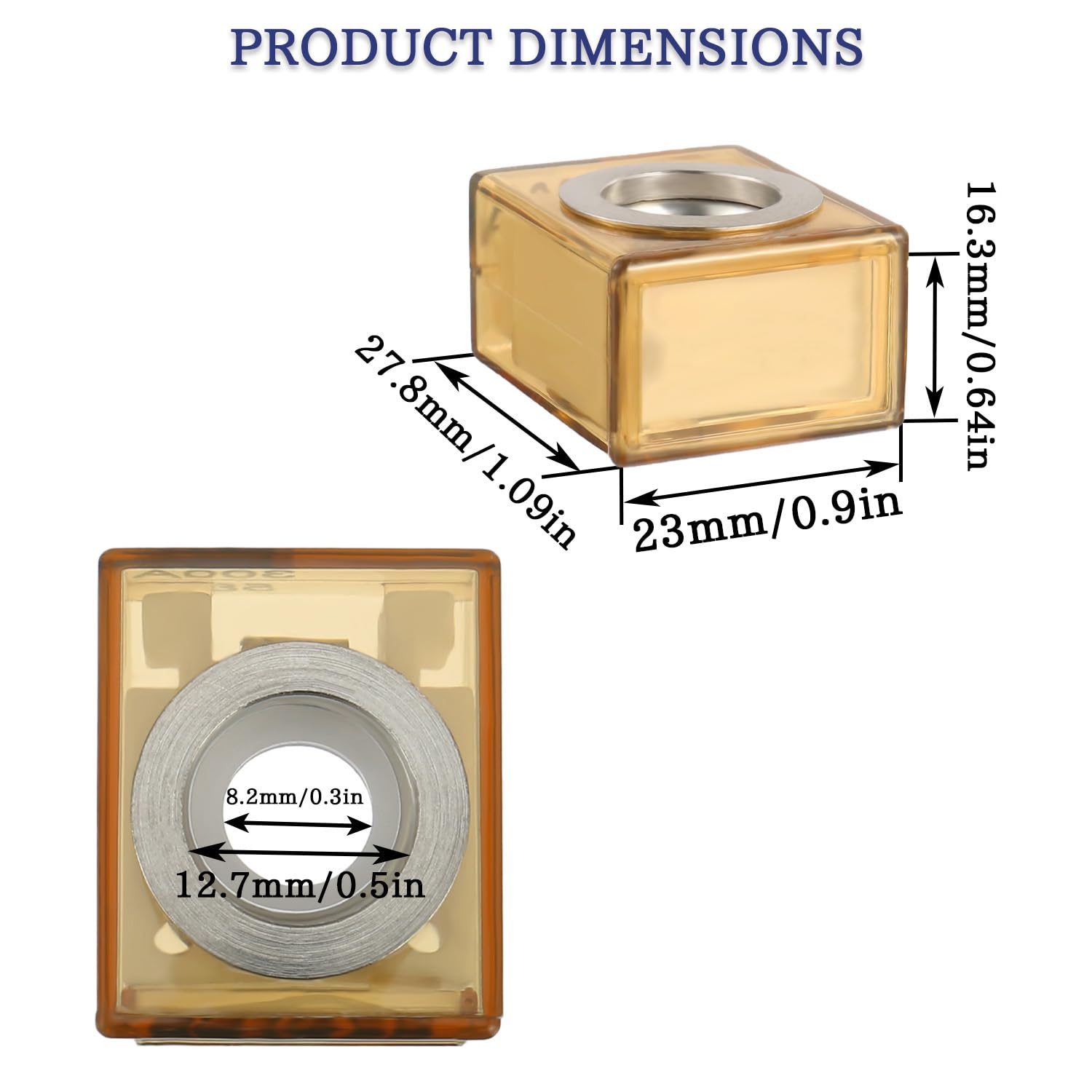 - 【Reference data】:Fuses have a Max Voltage Rating: 58V –– Fuse Holder have an Amperage Rating:50A – Fuses Holder Stud Size: M8 (5/16") –– Fuse Holder Mounting Hole: M10 (3/8")