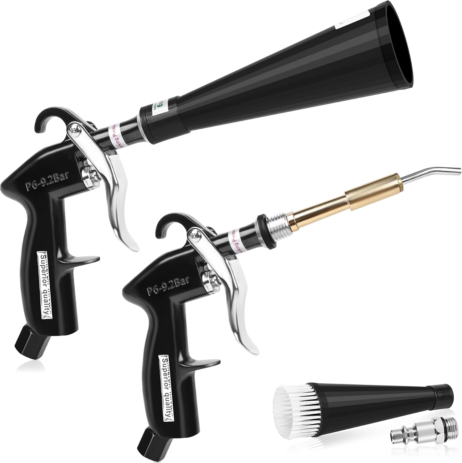 - 【Powerful Cleaning】Compared to ordinary cleaning tools, car detail air blower gun's powerful airflow is more targeted. Blowing away dirt and debris at a high pressure of 6-9.2Bar, it can easily and deeply clean crevices. And detailing air gun does not harm surfaces. Even velvet and leather can be cleaned. Blow out air guns are a great addition to your life