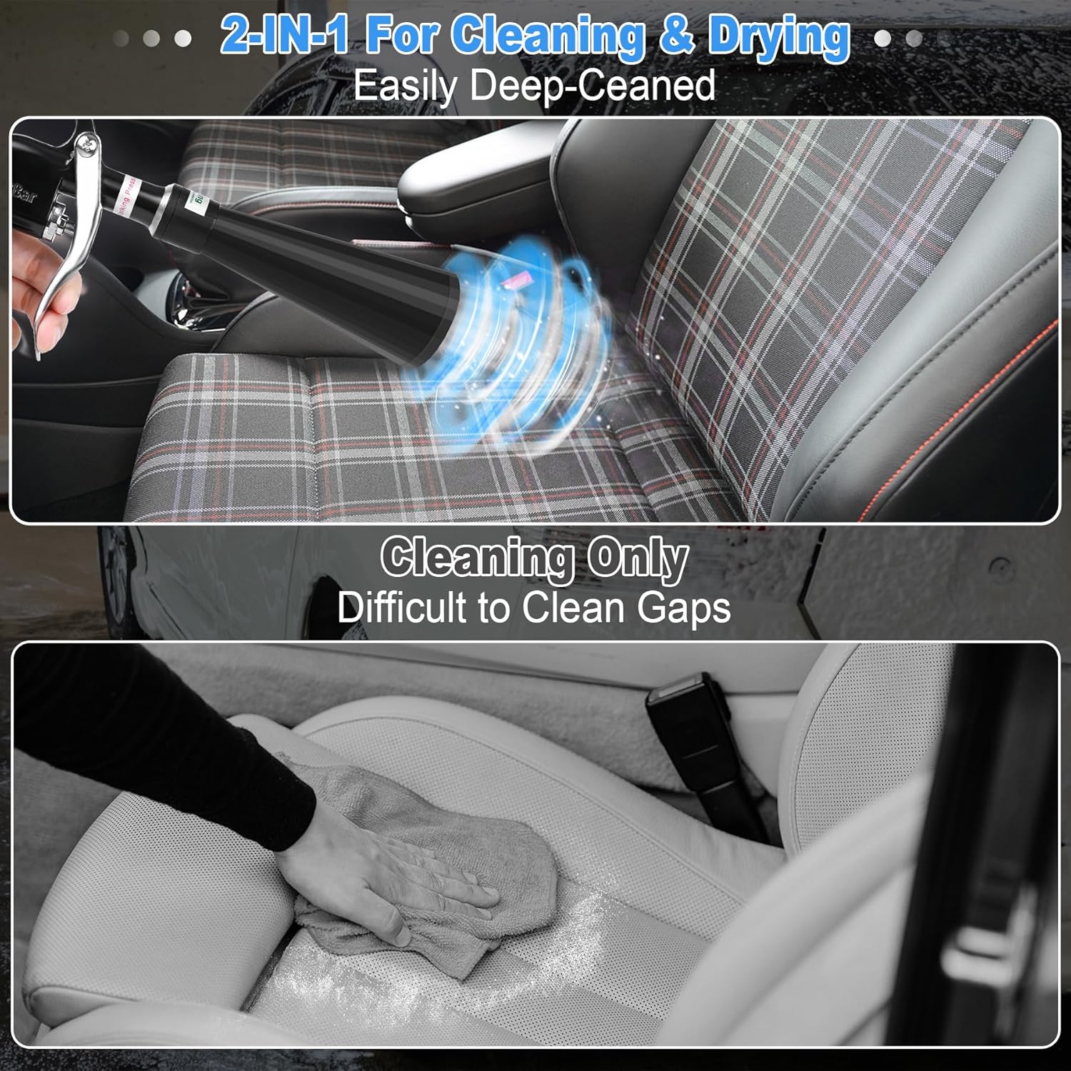 - 【Efficient & Effortless】Equipped with a new thickened copper connector to ensure gun is more robust. Conical design directs air to create a powerful wind. Covering a larger area than air compressor direct air flow. Saves time and effort, improves cleaning efficiency. Car interior cleaning tool quickly cleans car surfaces, cleans and air dries in seconds. Saves time and effort and improves cleaning efficiency