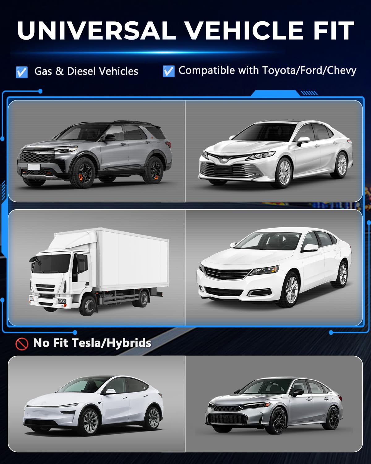 - NOT COMPATIBLE WITH: Dodge, JEEP, Sail, Chrysler, French models, Italian models, Suzuki, Mazda 6, Infiniti (QX50, Q50, Q501), Toyota Avanza (2013), Lexus (IS250, EX250, ES300H), Honda (Jazz, CR-V), Kia, hybrid and diesel vehicles, pickups, RVs, or vehicles with modified ECU/computer systems