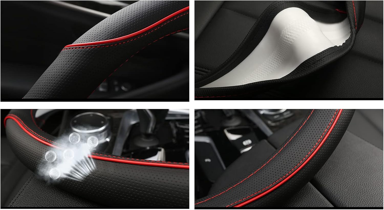 D Shape Car Steering Wheel Cover, Universal 15 inch Stitching Color Anti-Slip Steering Wheel Protector, Red and Black Style (Compact Packaging D Shape)