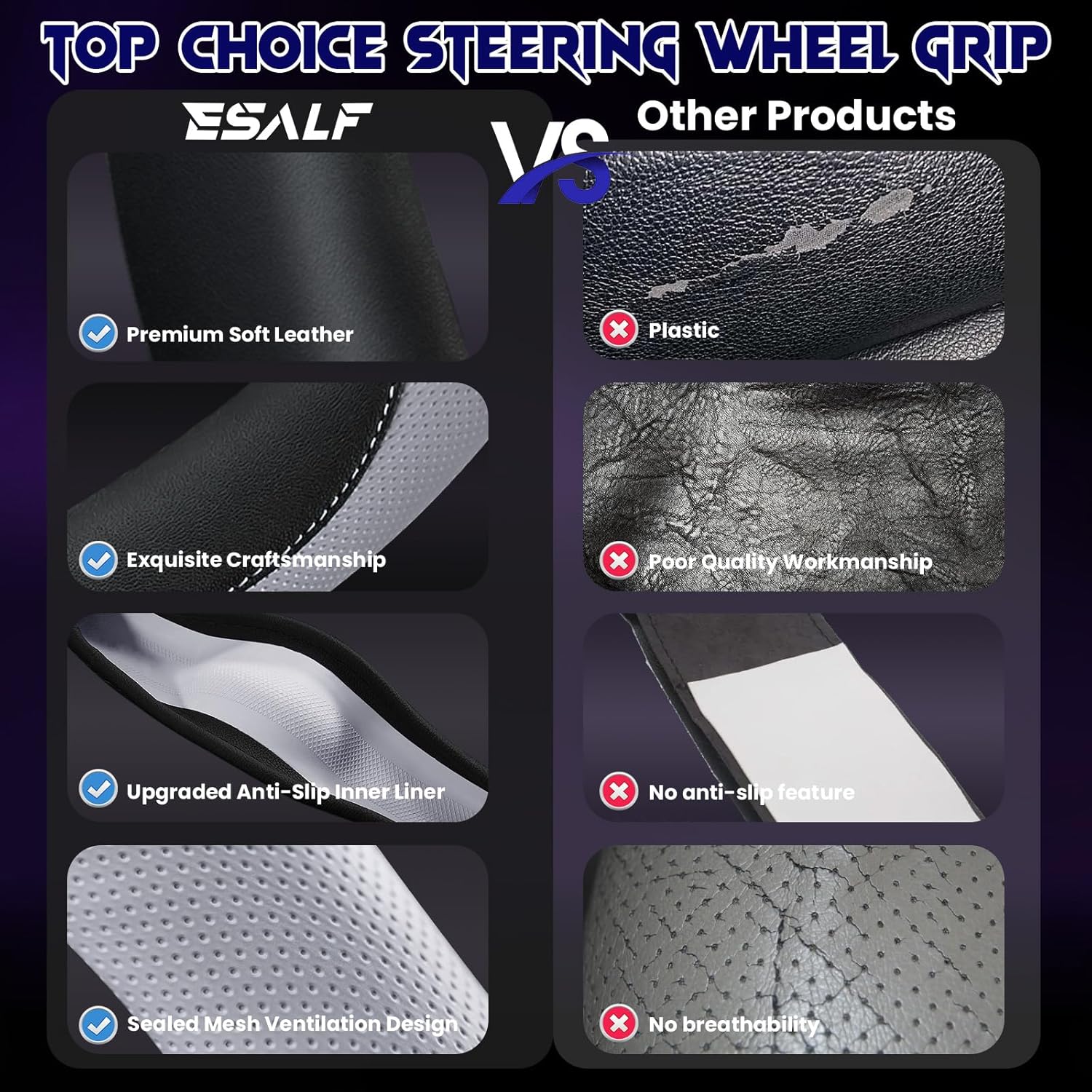 - ULTRA-FINE CRAFTSMANSHIP:Crafted through 500 meticulous processes with hand-inspected quality, this steering wheel cover delivers flawlessly aligned seams, a premium tactile finish, and ergonomic comfort for elevated driving pleasure.